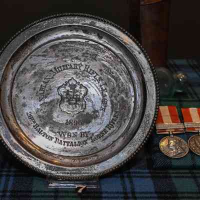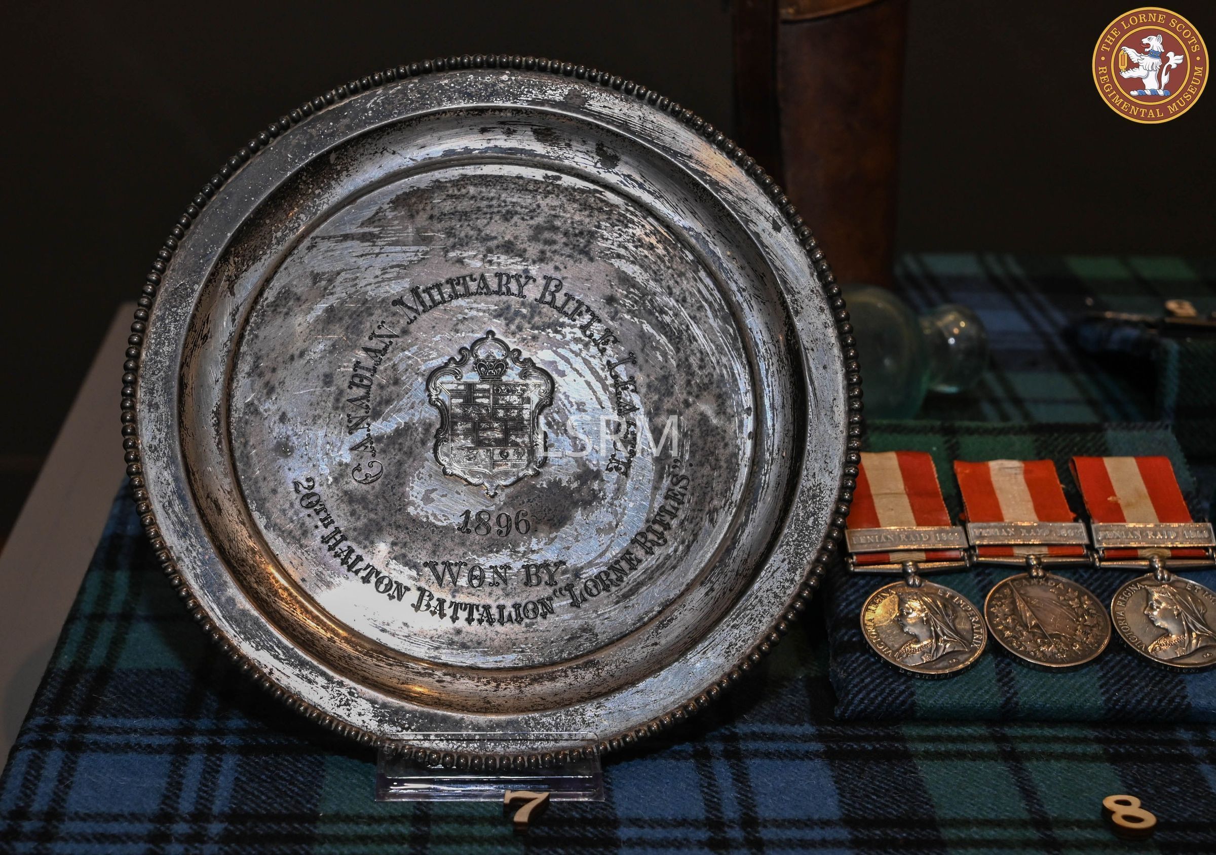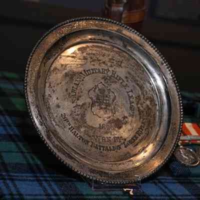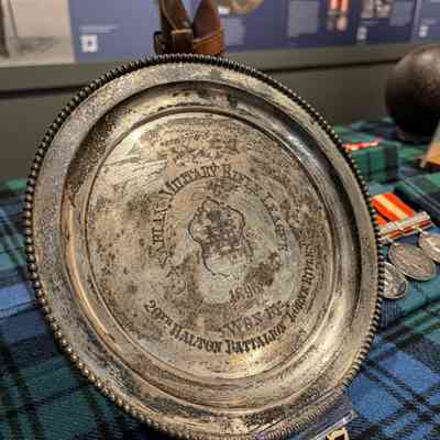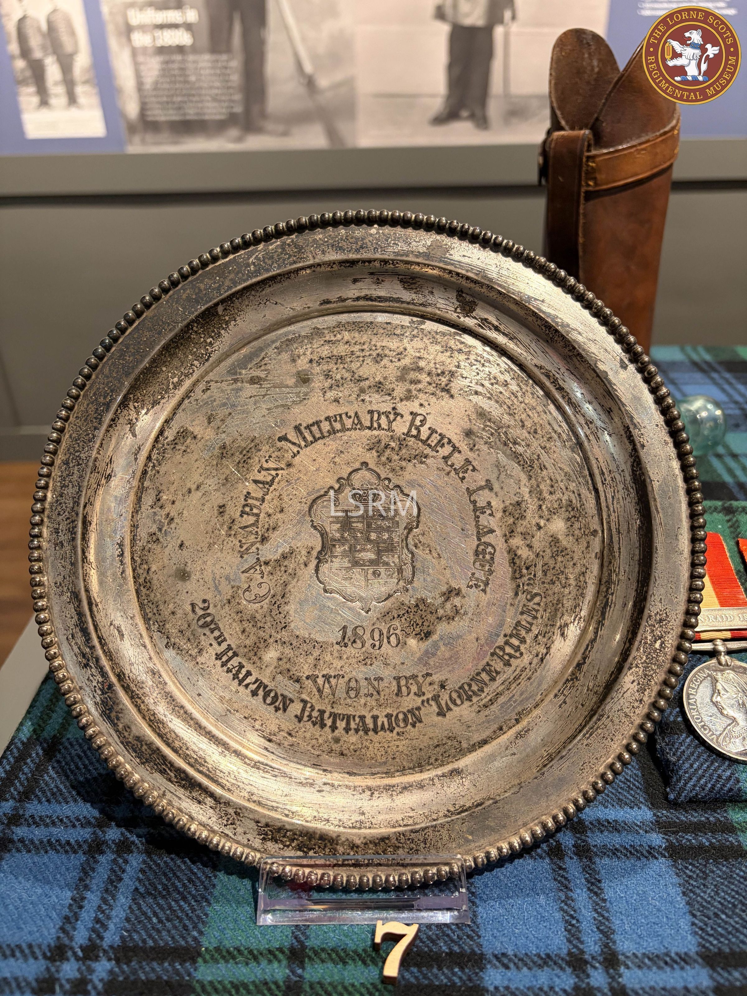 Silver plate awarded as a prize by the Canadian Military Rifle League for shooting competition in1896. Won by the 20th Halton Battalion, Lorne Rifles.Context