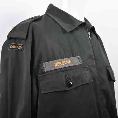 Canadian Dark Green Work Dress named to Jerry Derochie, with "CANADA" flashes and nameplate.Use