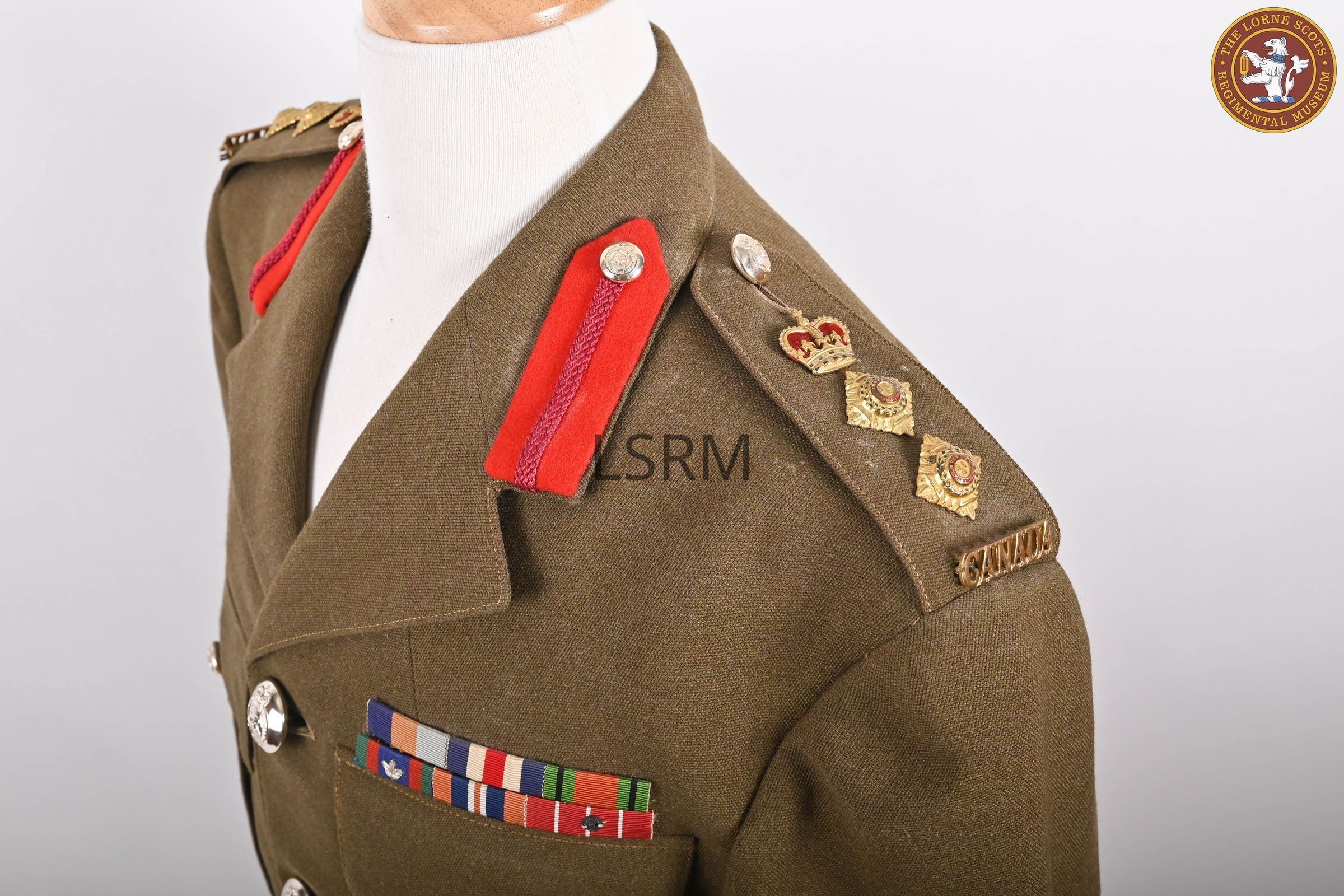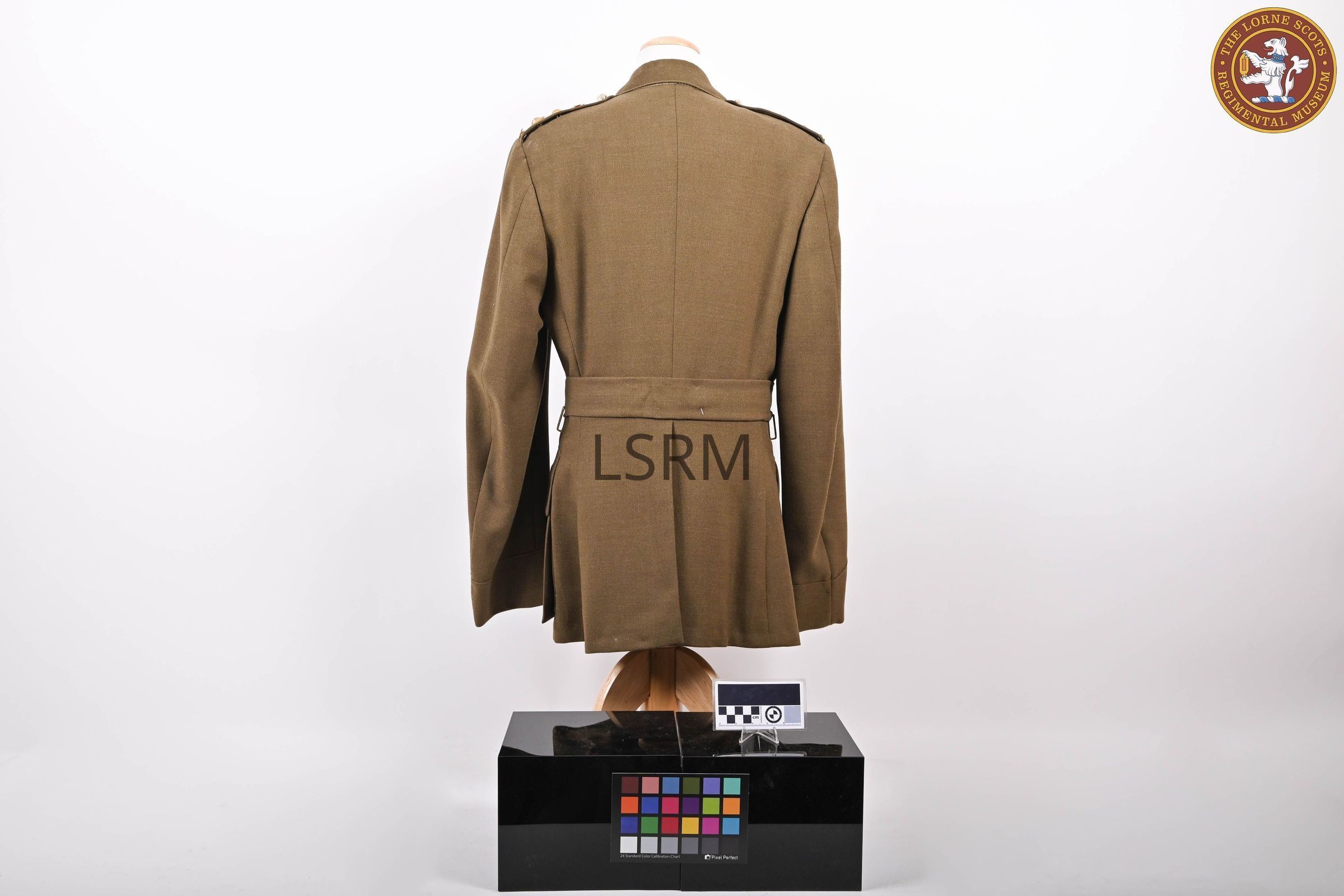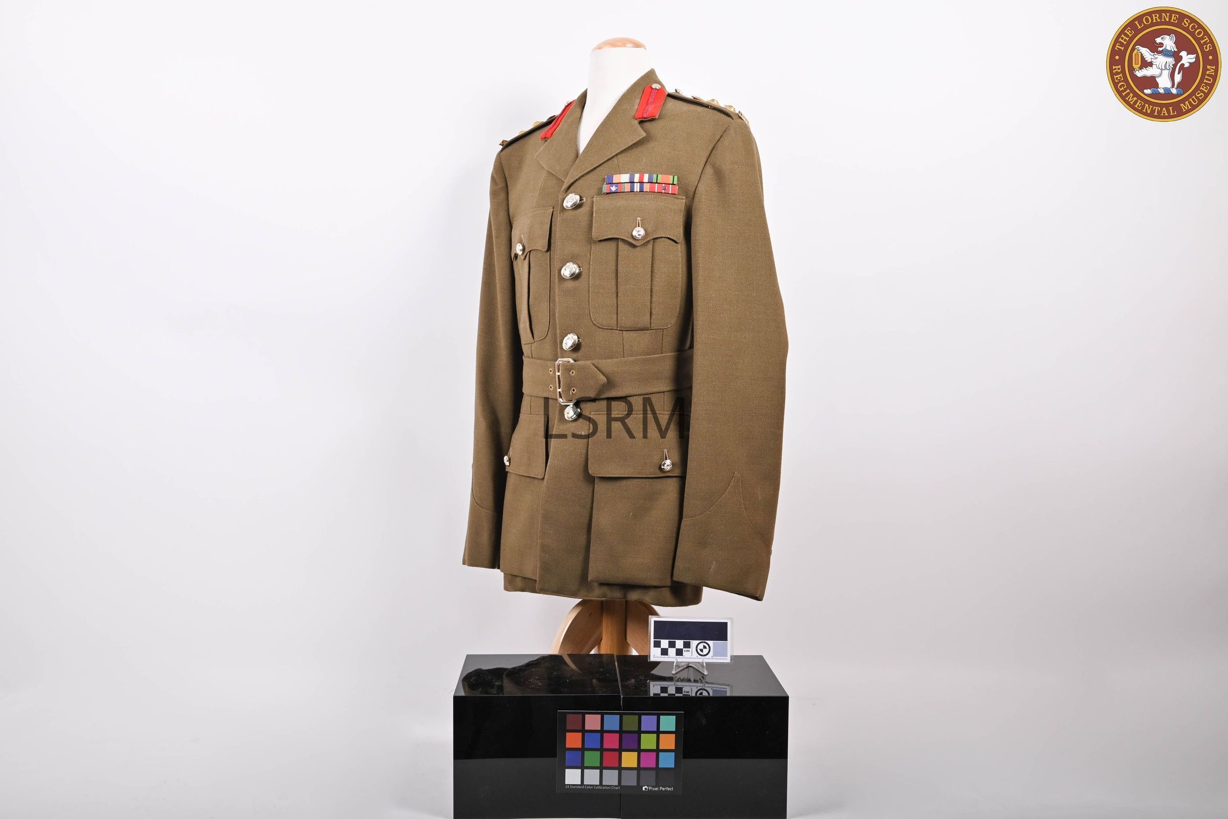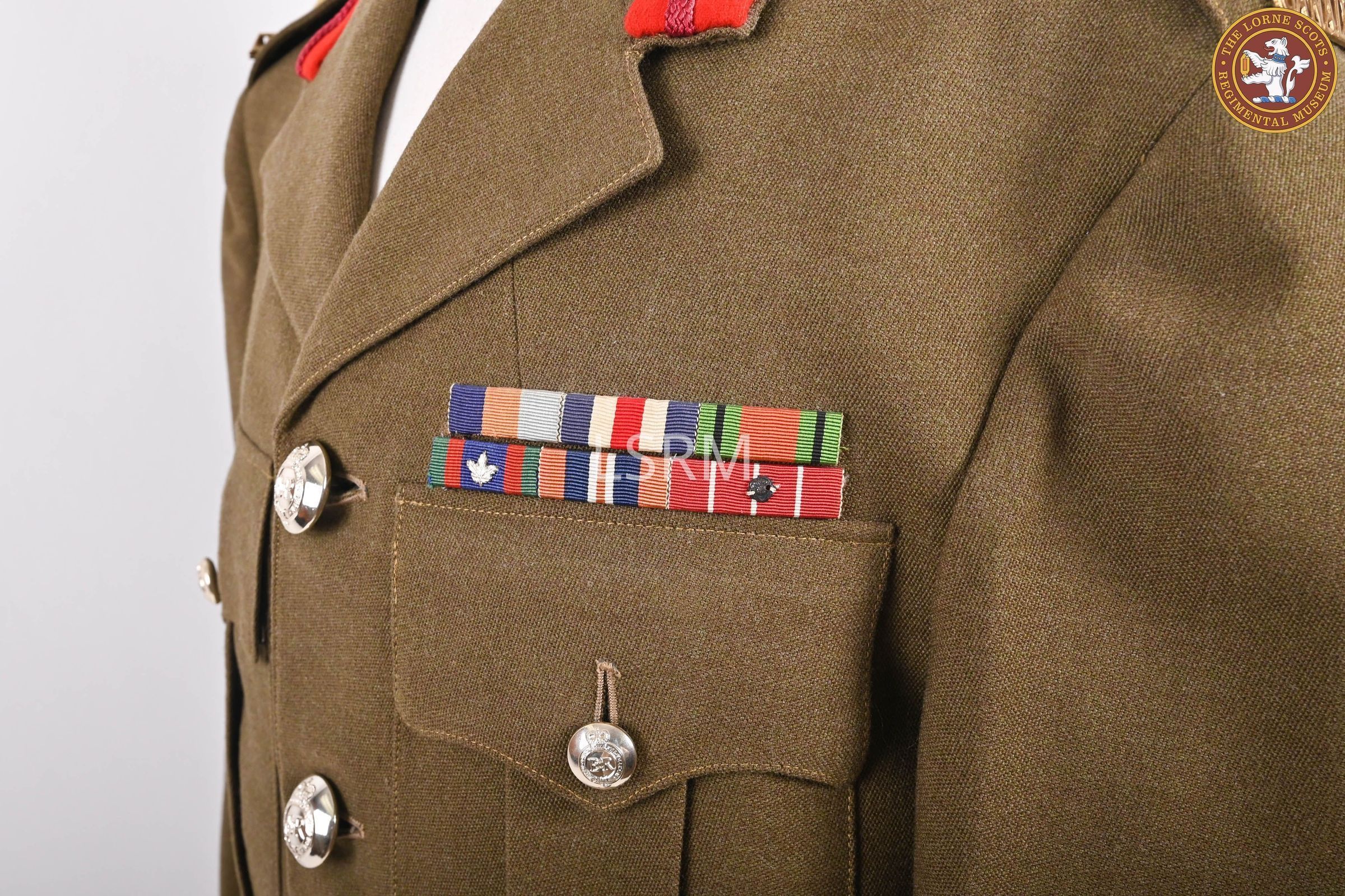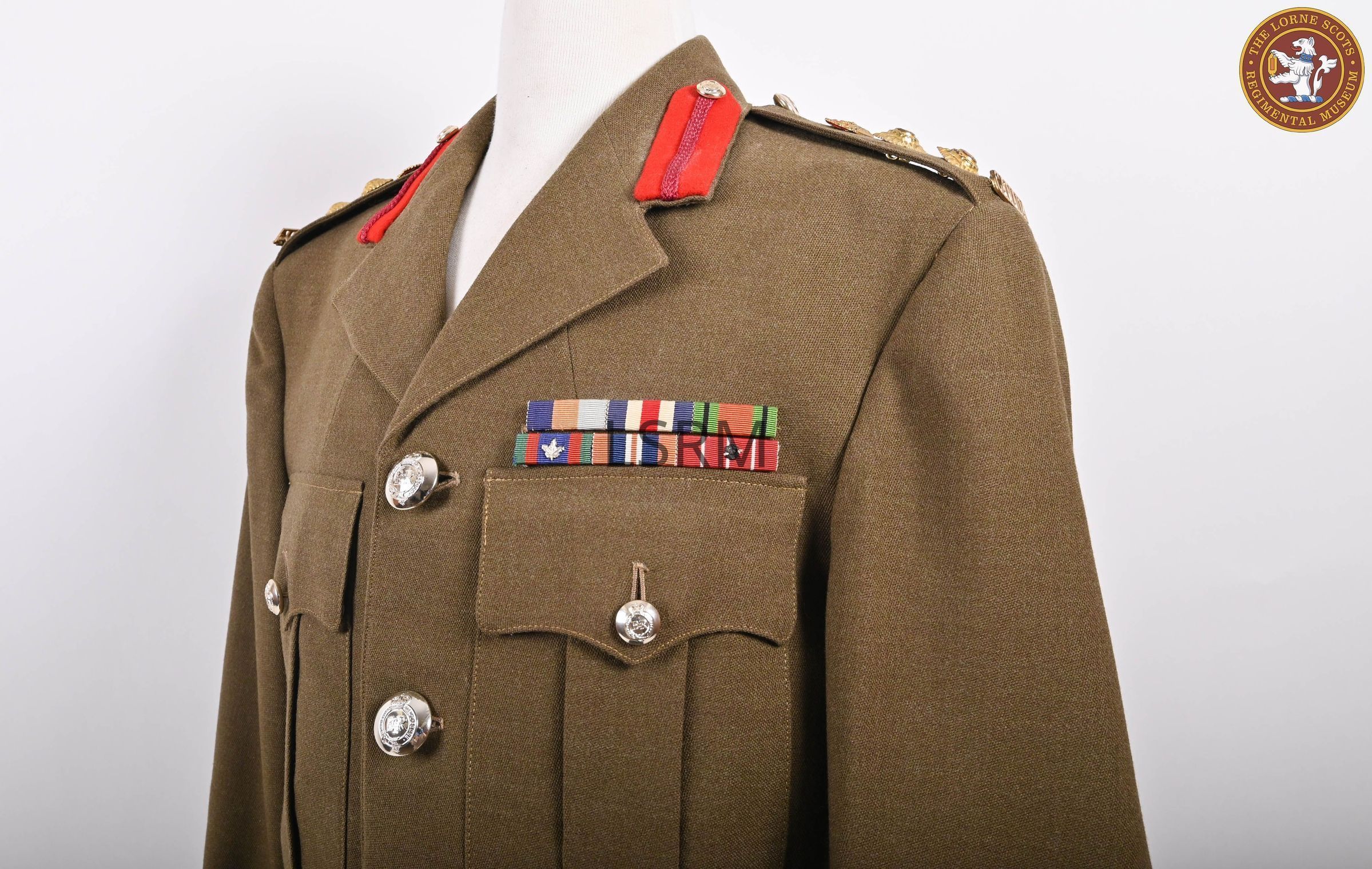 Jacket named to Col. Charters (Lorne Scots), with QEII buttons and Second World War medal ribbons. Col Charters commanded the Lorne Scots 1954 - 1957 and later, 17 Militia Group