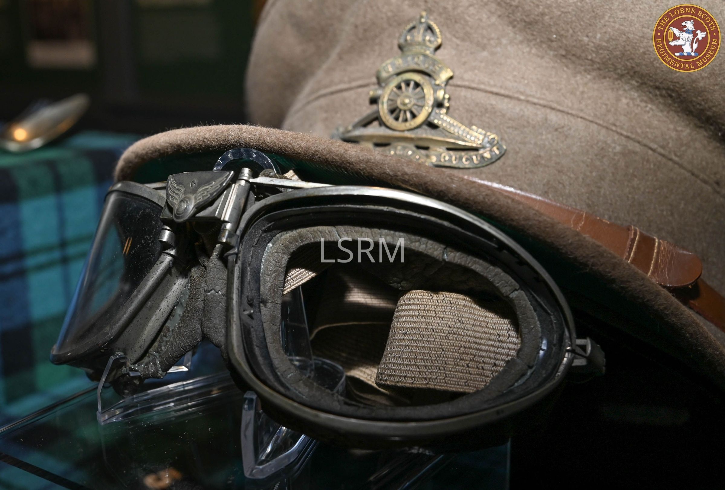 The flying googles, along with many other military items belonging to Lieutenant Colonel Smythe were given to the Museum f=by the Smythe family after his death in 1980.