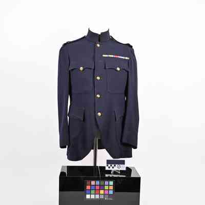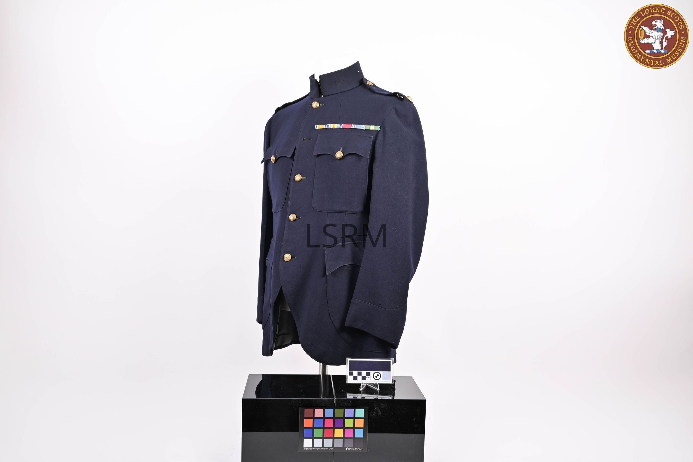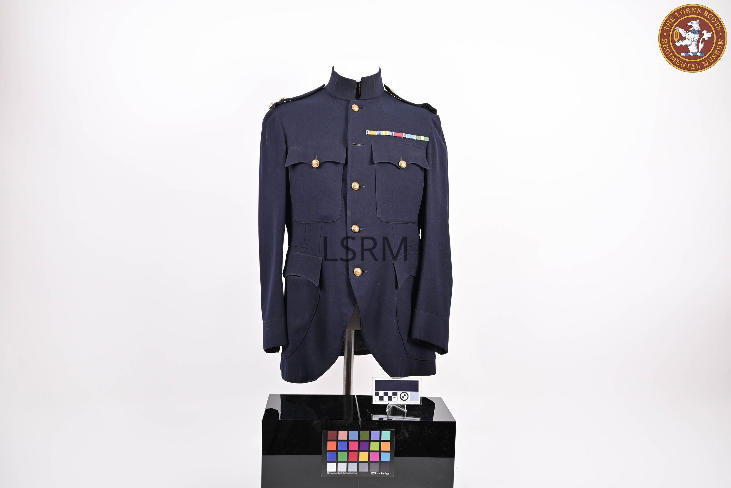 The inter-war blue Patrol Dress of Lt Colonel Fitzgerald (Lorne Scots). See the First World War medal ribbons on the chest.Use