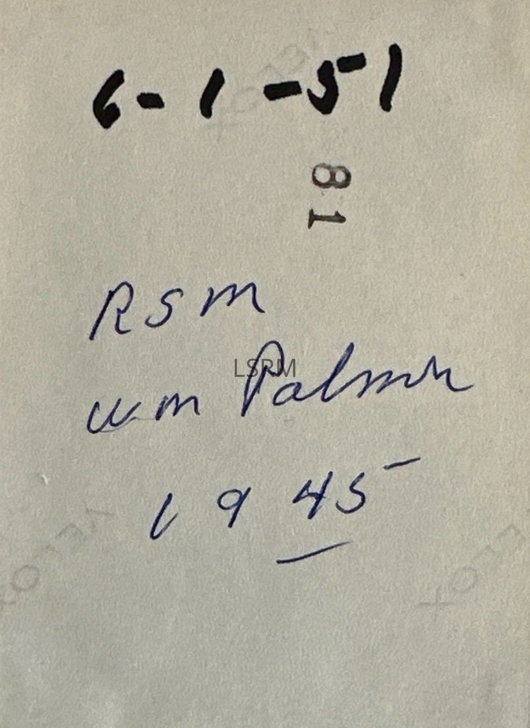Photograph, RSM W.M. PalmerEntry/Object ID