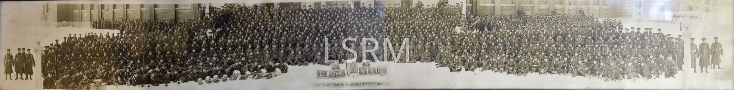 Group photograph of 74th Bn at the CNE, 1916 taken approximately one month before sailing for England