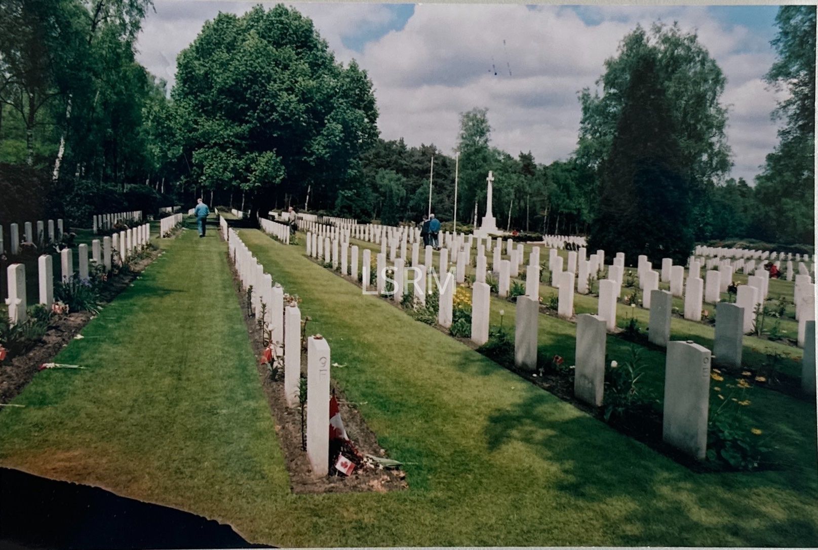 Photograph of a Commowealth War Graves Commission Cemetery. Many of the headstones appear to be Canadian war dead of the Second World War.