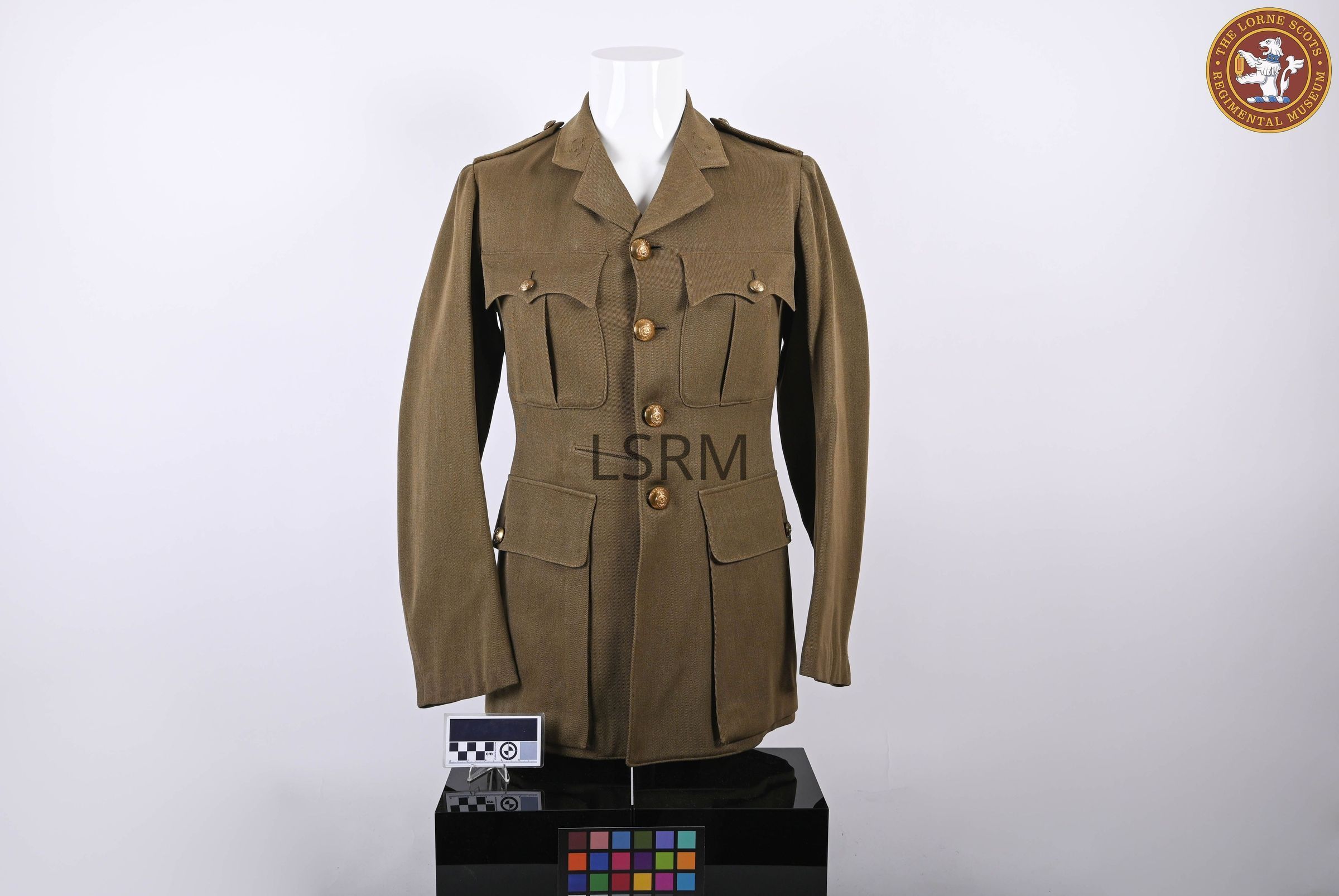 A Second World War era officer's khaki service dress jacket with general Service Brass Buttons.Use