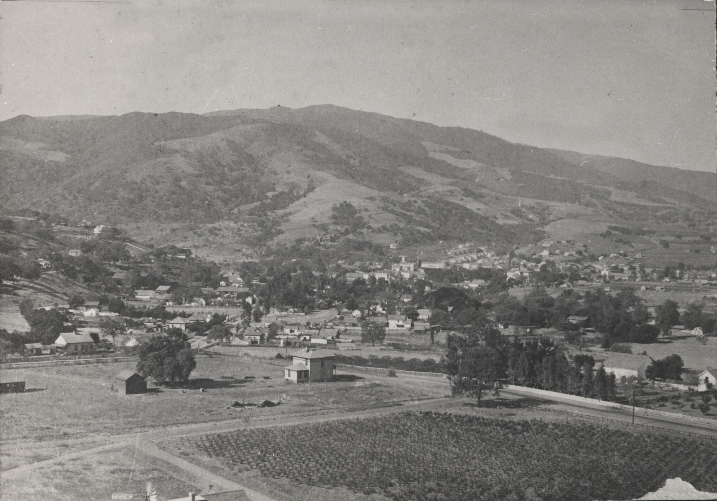 Looking west from a hill above Market Street (Loma Alta Avenue). San Jose Road (Los Gatos Boulevard) runs through the center of the photograph. A011Collection