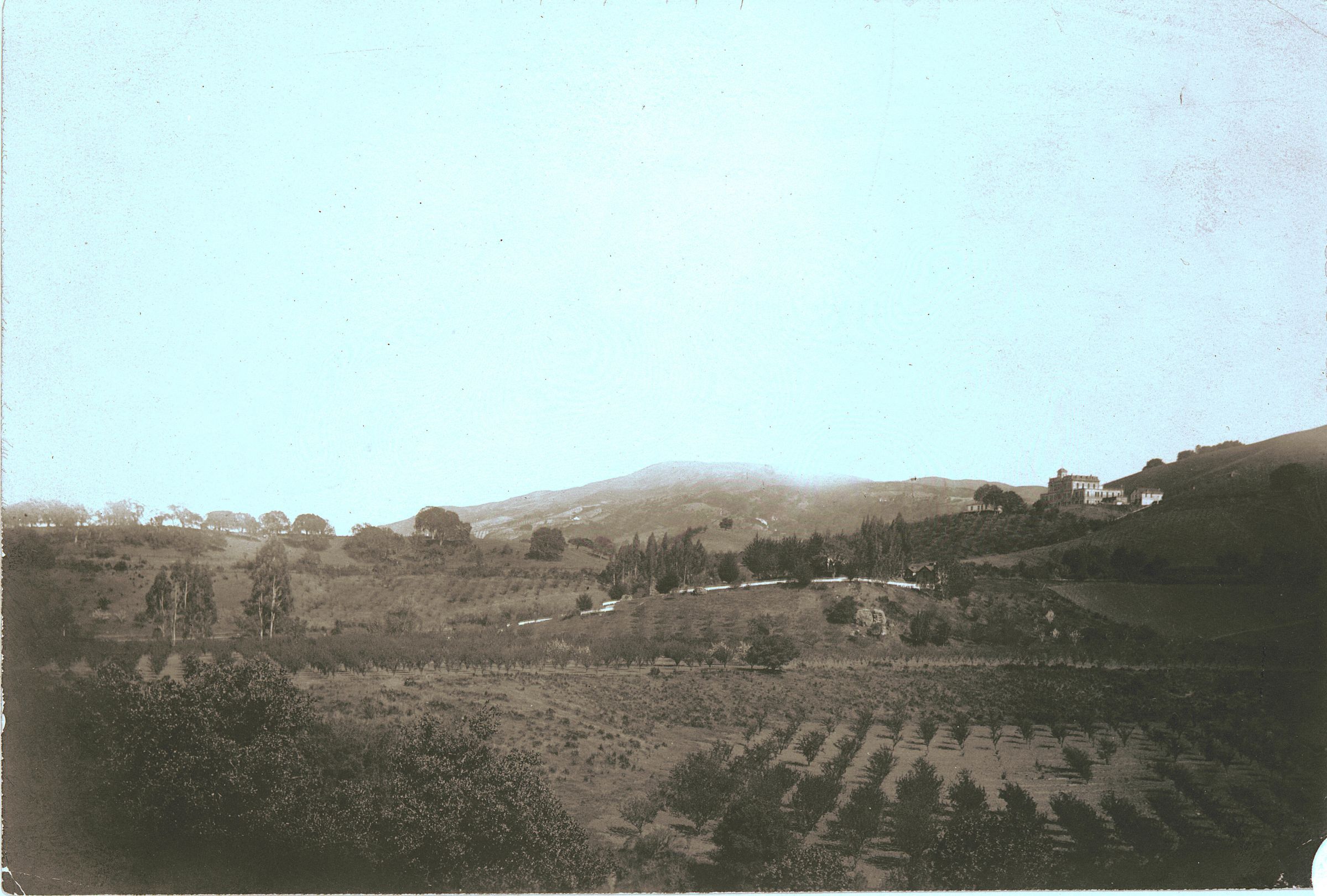 View towards the southeast. Sacred Heart Novitiate (1888) in the distance, sits on the brow of the hill on the right. A062Collection