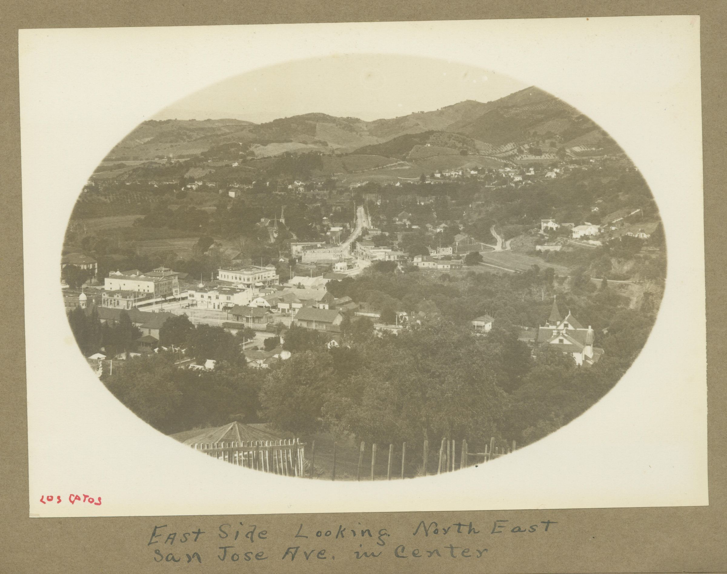 Wagner photo album photograph of the east side of Los Gatos looking northeast with San Jose Avenue in the center. WAG034Collection