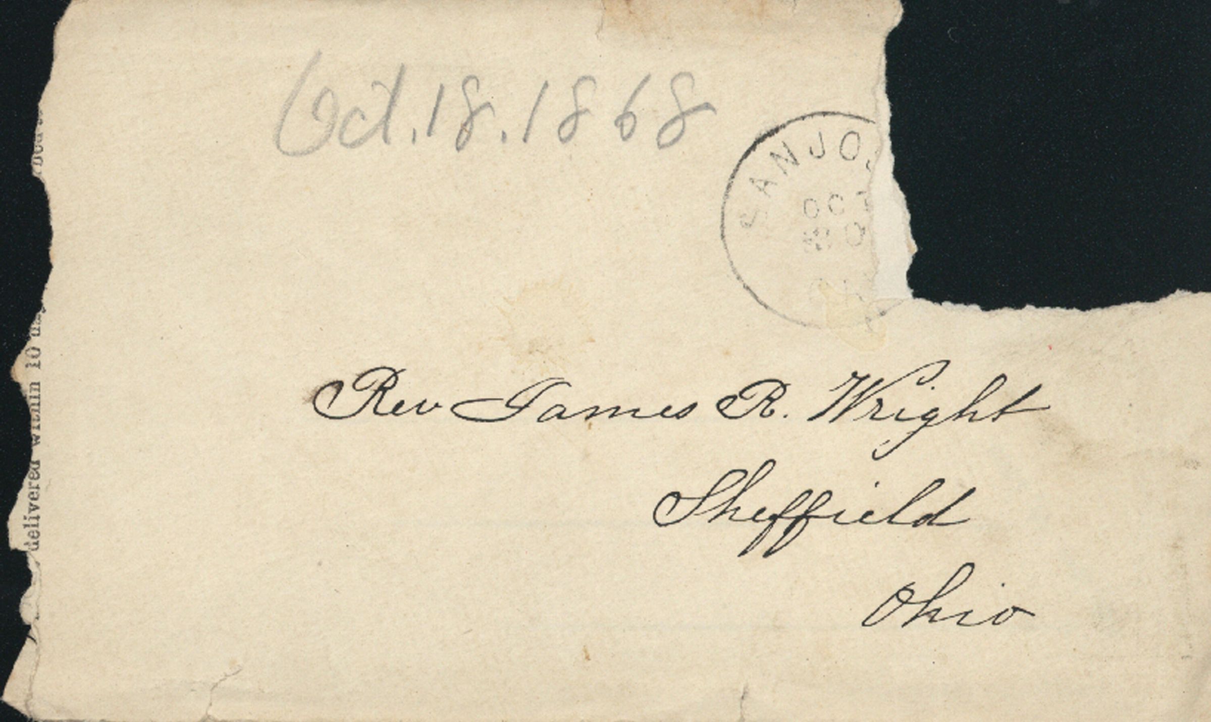 Envelope of Burrell letter dated October 18, 1868. BU020Collection