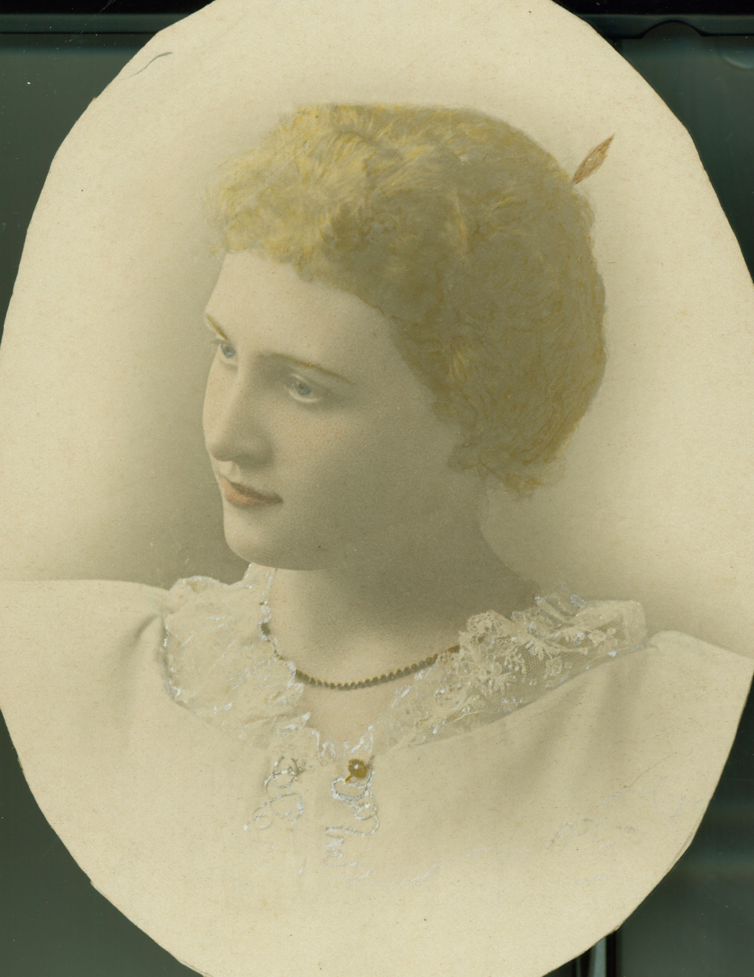 From back of photo,"Mrs. Abbie M. Maxwell, age 21 years. Oval portrait." BA187Collection