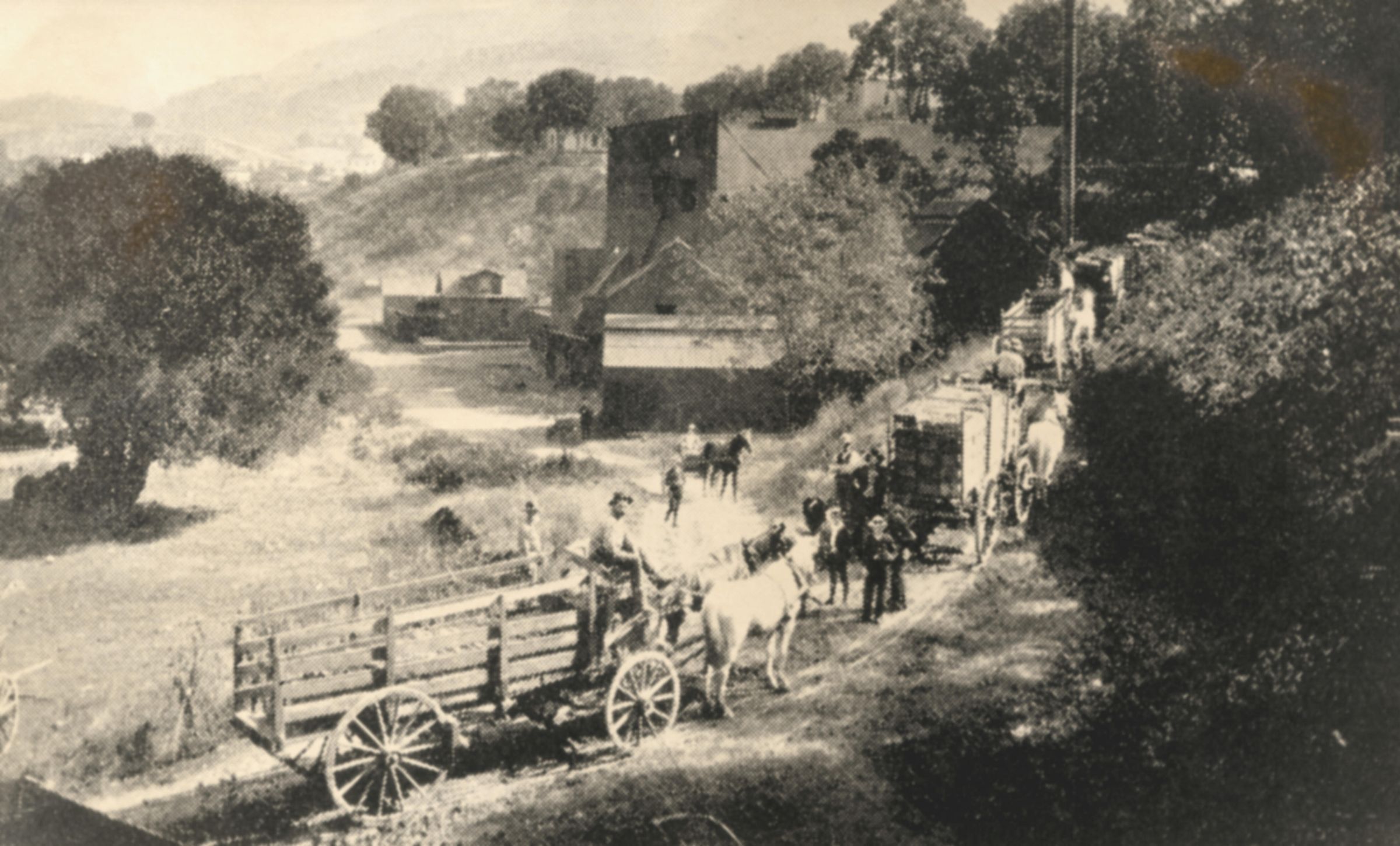 Los Gatos Cooperative Winery was built in 1886 on Winery Road, later Villa Avenue. It was located against the hill below Cleland Avenue. AG002Collection