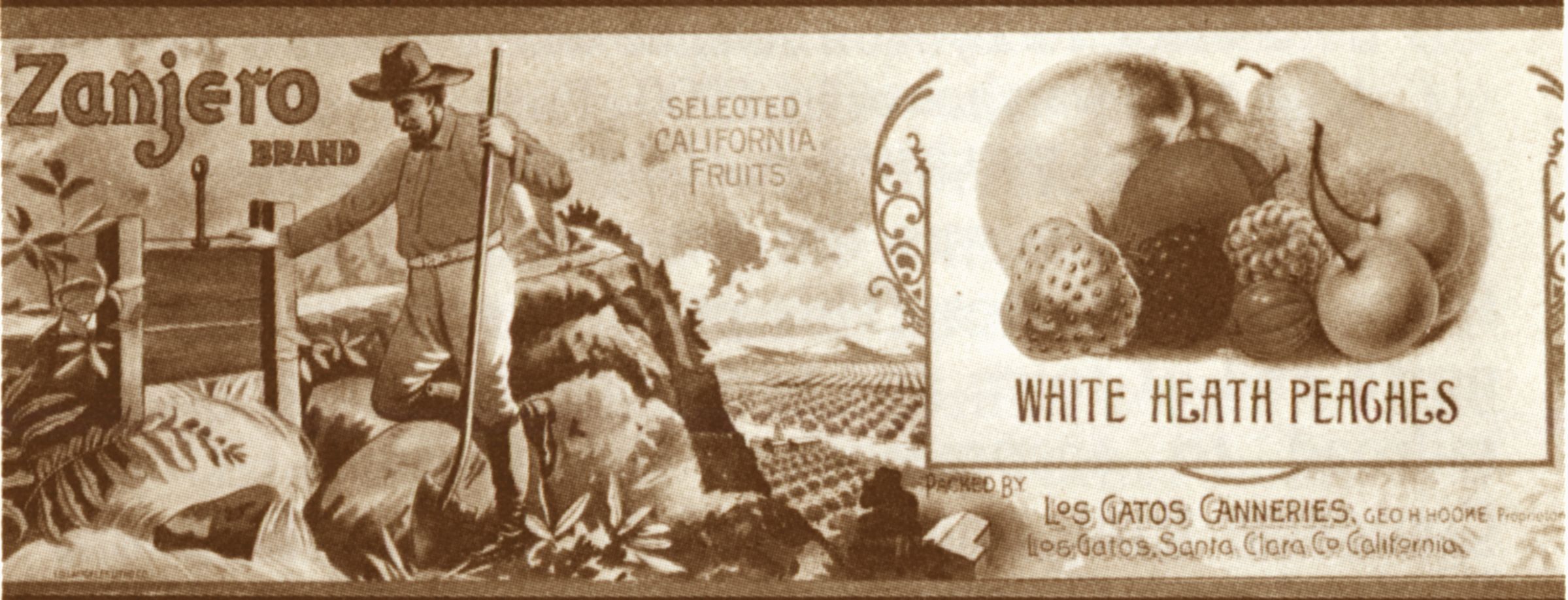 Label says "Zanjero Brand, White Heath Peaches," from Los Gatos Canneries. AG035Collection