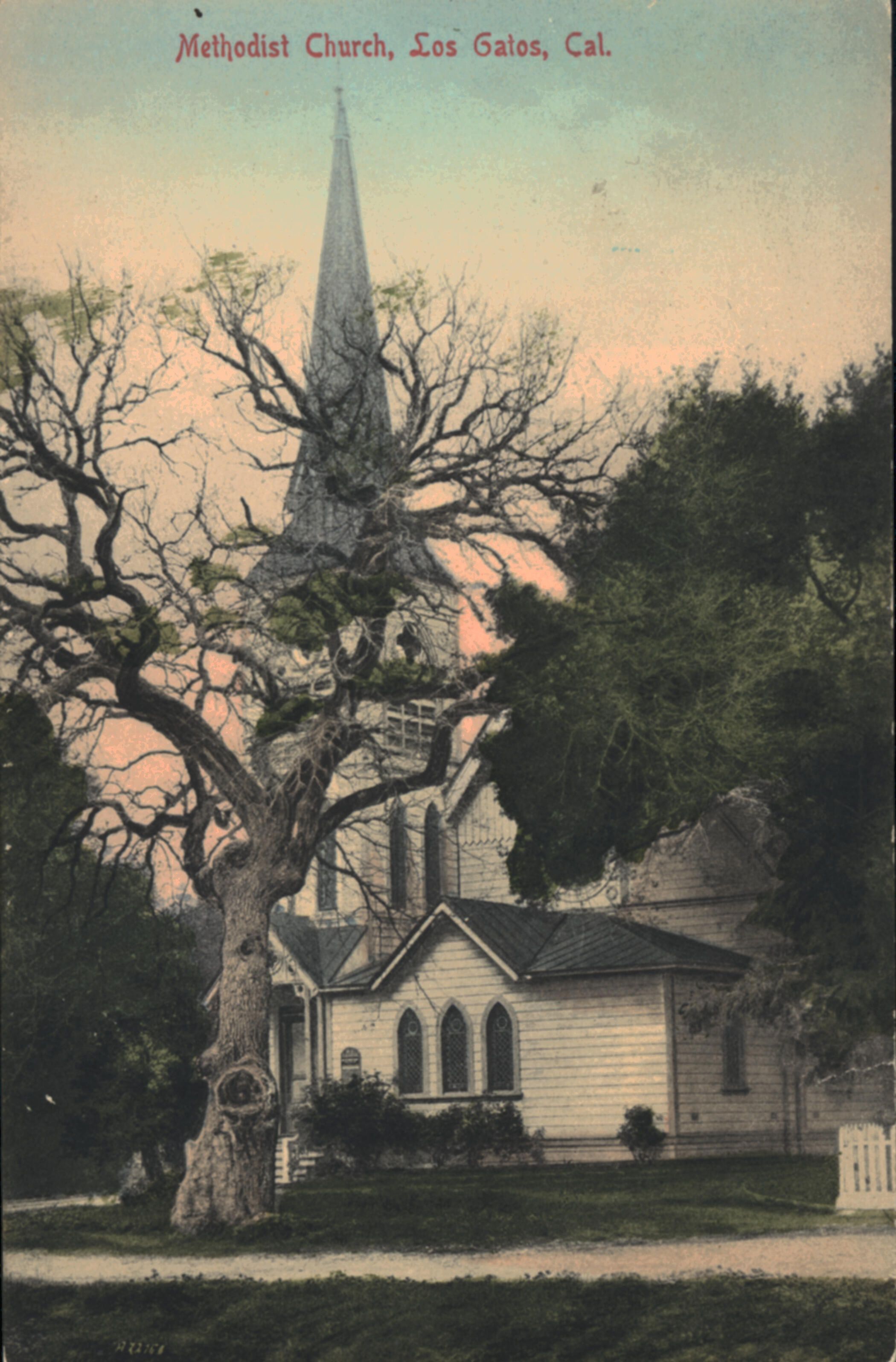 The Methodists were the first organized religious group in Los Gatos. Their first wooden building on Church Street was constructed in 1867. The church pictured here was dedicated on December 29, 1889. BA049Subject
