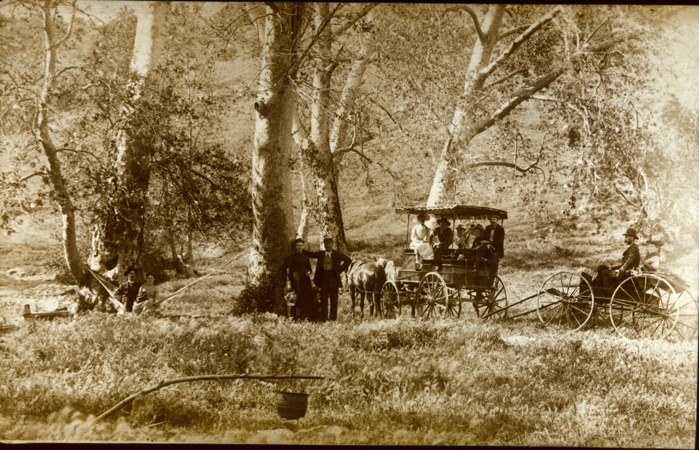 Picnic in the countryside around Los Gatos. Notice the surrey-with-a-fringe-on-top. BER089Collection