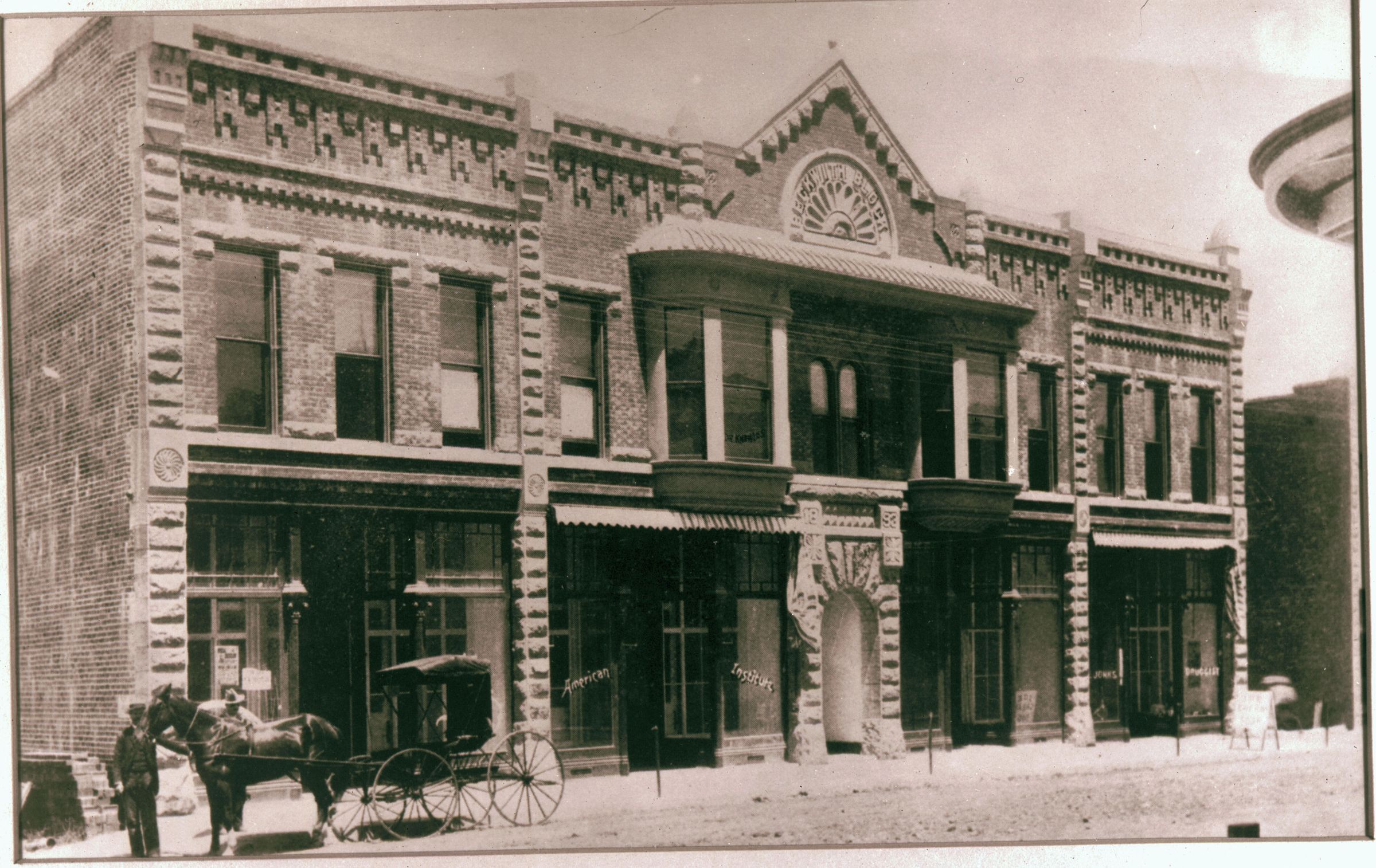This landmark building on East Main Street was built after the fire of 1891. In 1895 it housed the Scofield and Beach Confectionery Shop, which featured marble top tables, a Brussels carpet on the floor, and a black onyx and green mottled Italian marble soda fountain. For many years, the Beckwith served as the Rex Hotel. Badly damaged in the 1989 Loma Prieta earthquake, it had to be almost completely rebuilt. HC072Collection