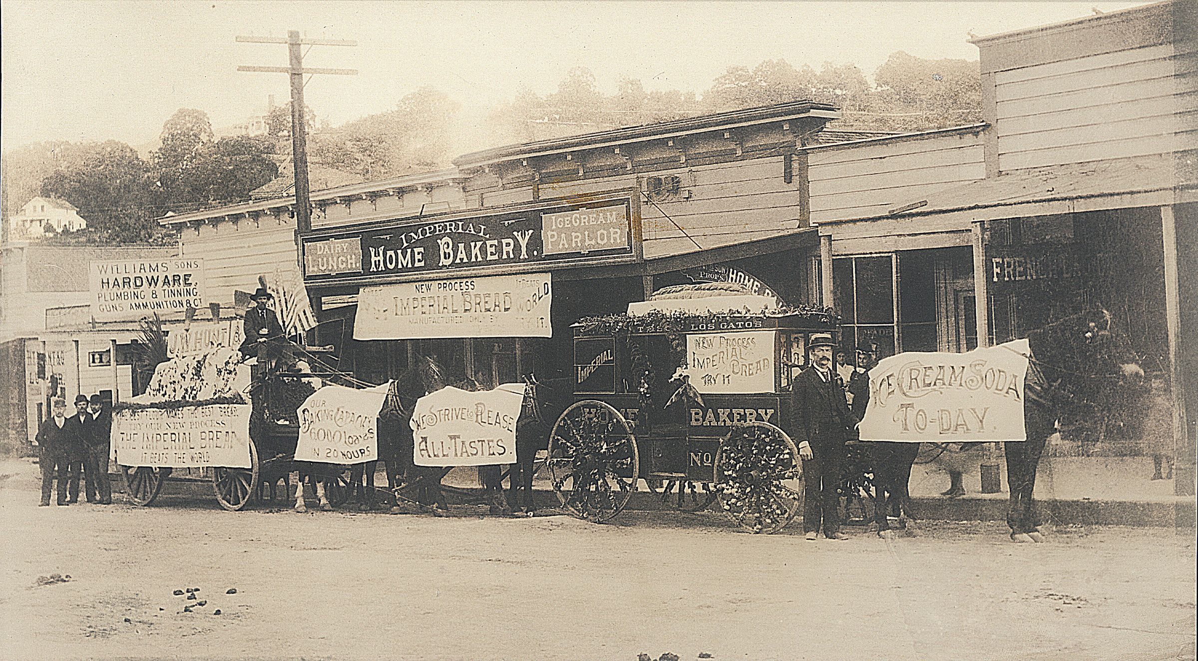 The bakery was on the south side of West Main Street, west of Park Street. Here is a float prepared to participate in one of Los Gatos' many parades. HC074Collection