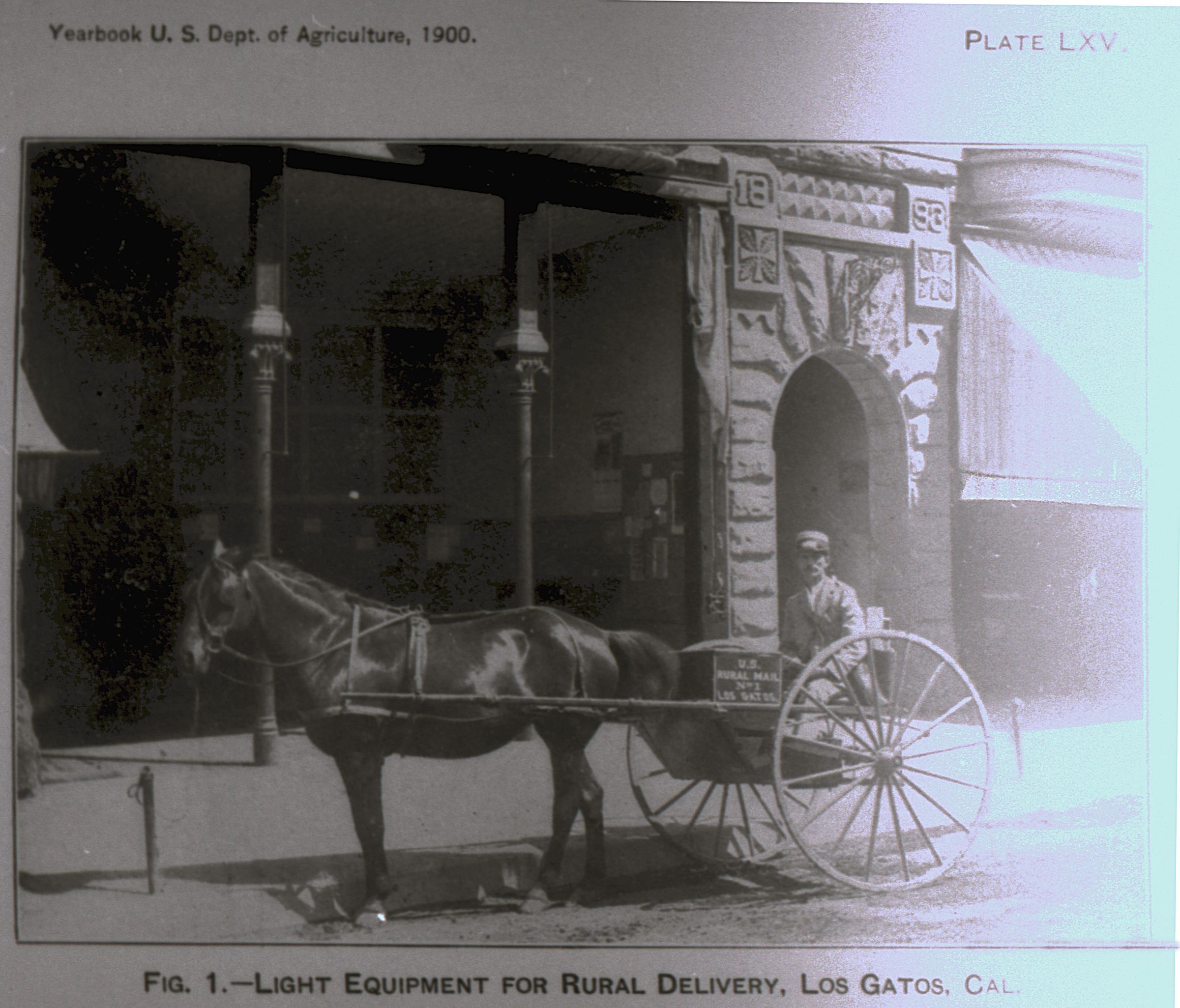 Postal employee posed on one-horse wagon designed to deliver mail. BA098Collection