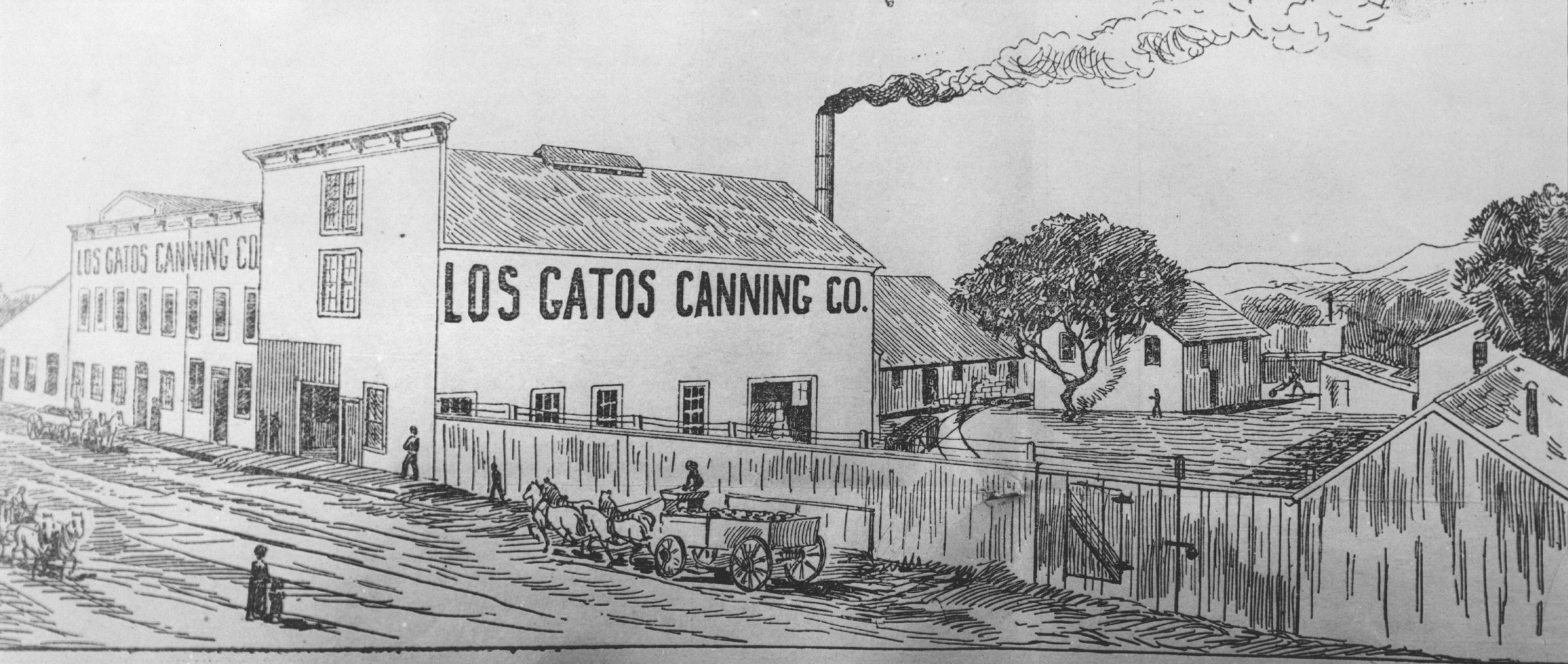 Located from 57 North Santa Cruz Avenue south 100 feet, the first cannery in Los Gatos, erected in 1882, ran back a full block to Lyndon Avenue. It existed in the area where the movie house stands today. In 1900, two new warehouses were added, fronting Santa Cruz Avenue, making two solid buildings through the entire block to Lyndon Avenue. HC046Type of Drawing