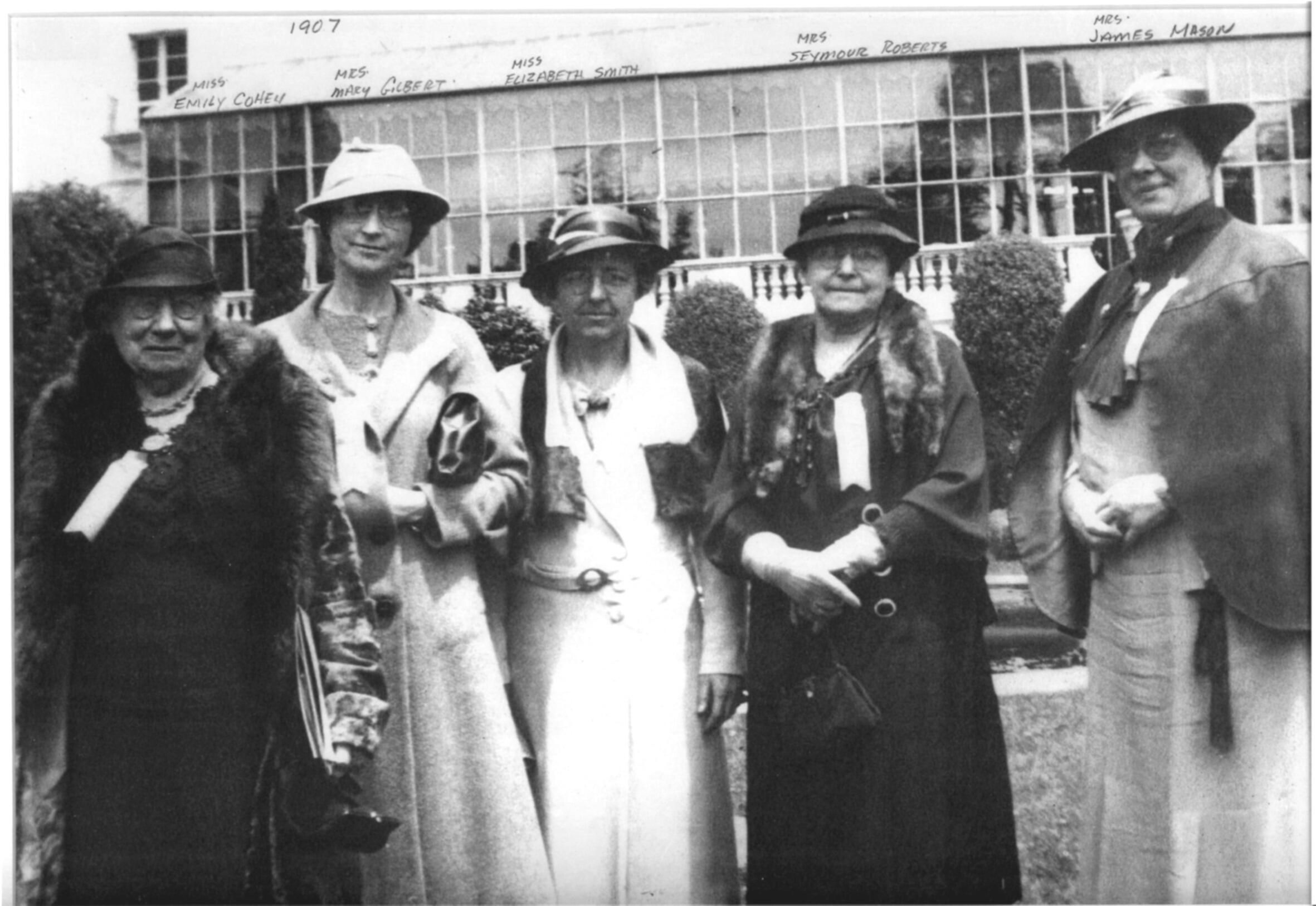 Mrs. Richard A. Urquhart gathered together six women in 1897 to study history, ancient and modern. Pictured from left to right are Miss Emily Cohen, Mrs. Mary Gilbert, Miss Elizabeth Smith, Mrs. Seymour Roberts, and Mrs. James Mason.Collection