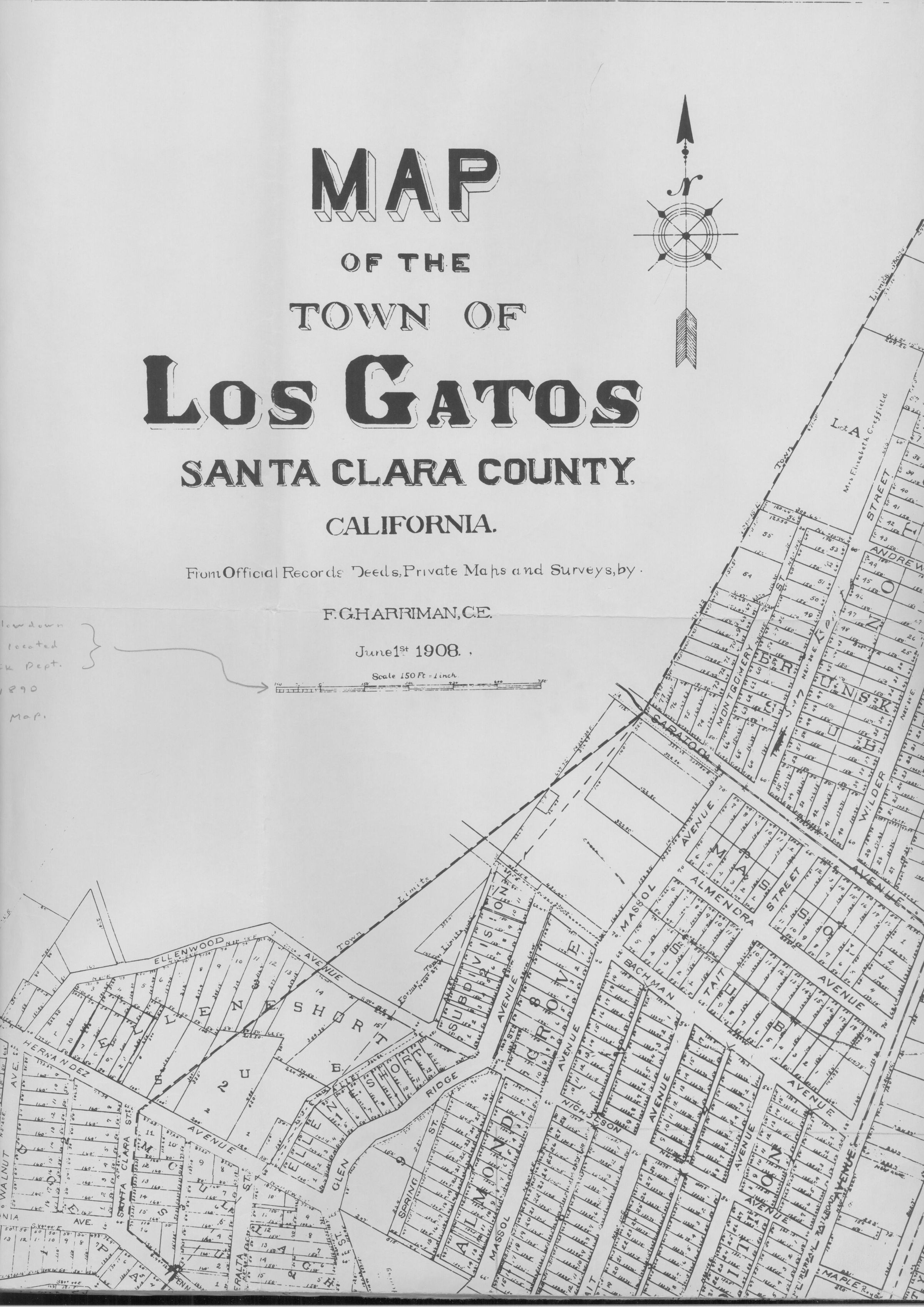 "Map of the Town of Los Gatos, Santa Clara County California, from Official Records, Deeds, Private Maps and Surveys by F. G. Harriman, C.E., June 1, 1908." MPS000Collection
