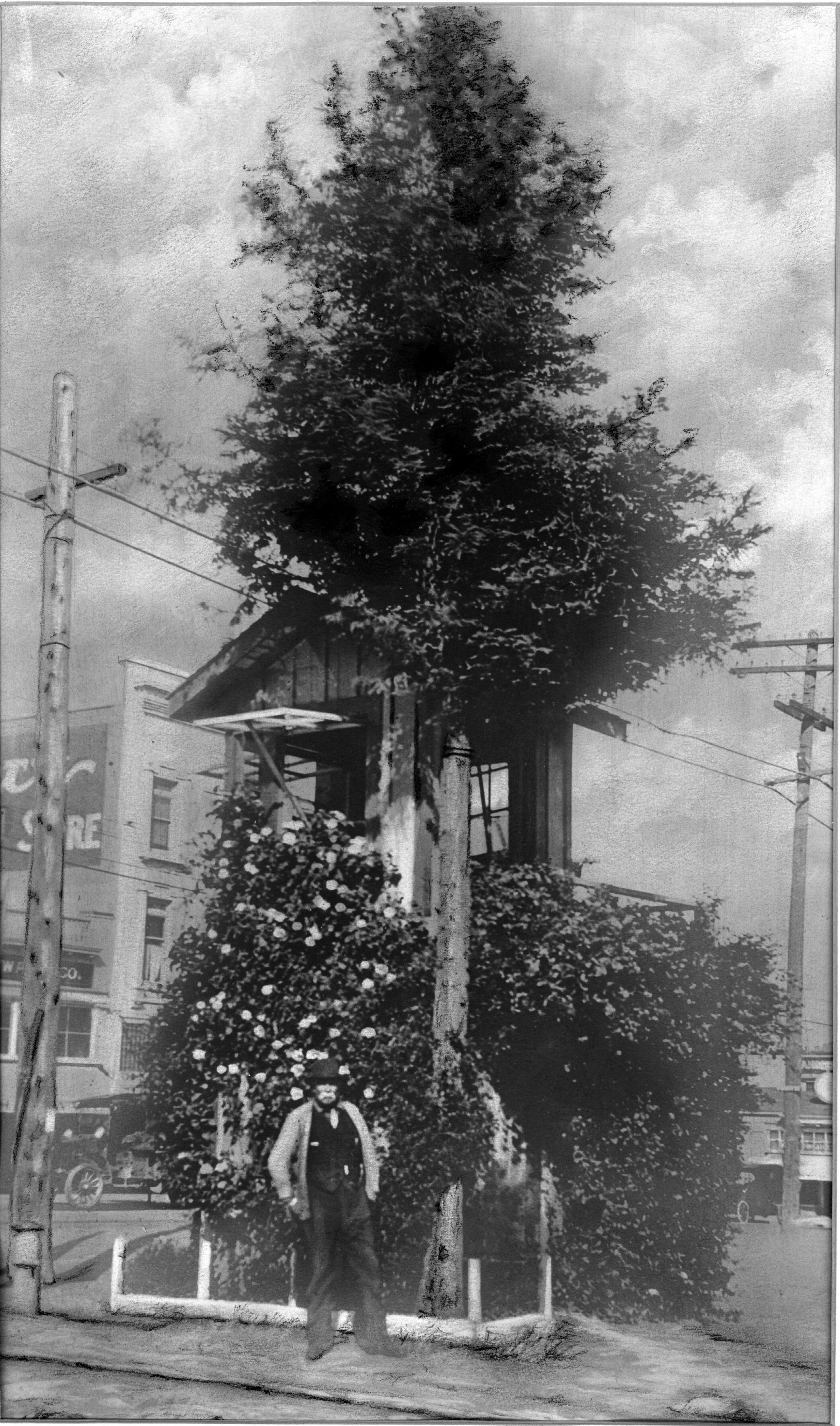 This Southern Pacific tower was erected in 1910 on the south side of West Main Street, and it stood until 1928. Before this time, a lone flagman controlled the Main Street crossing. HC089Collection