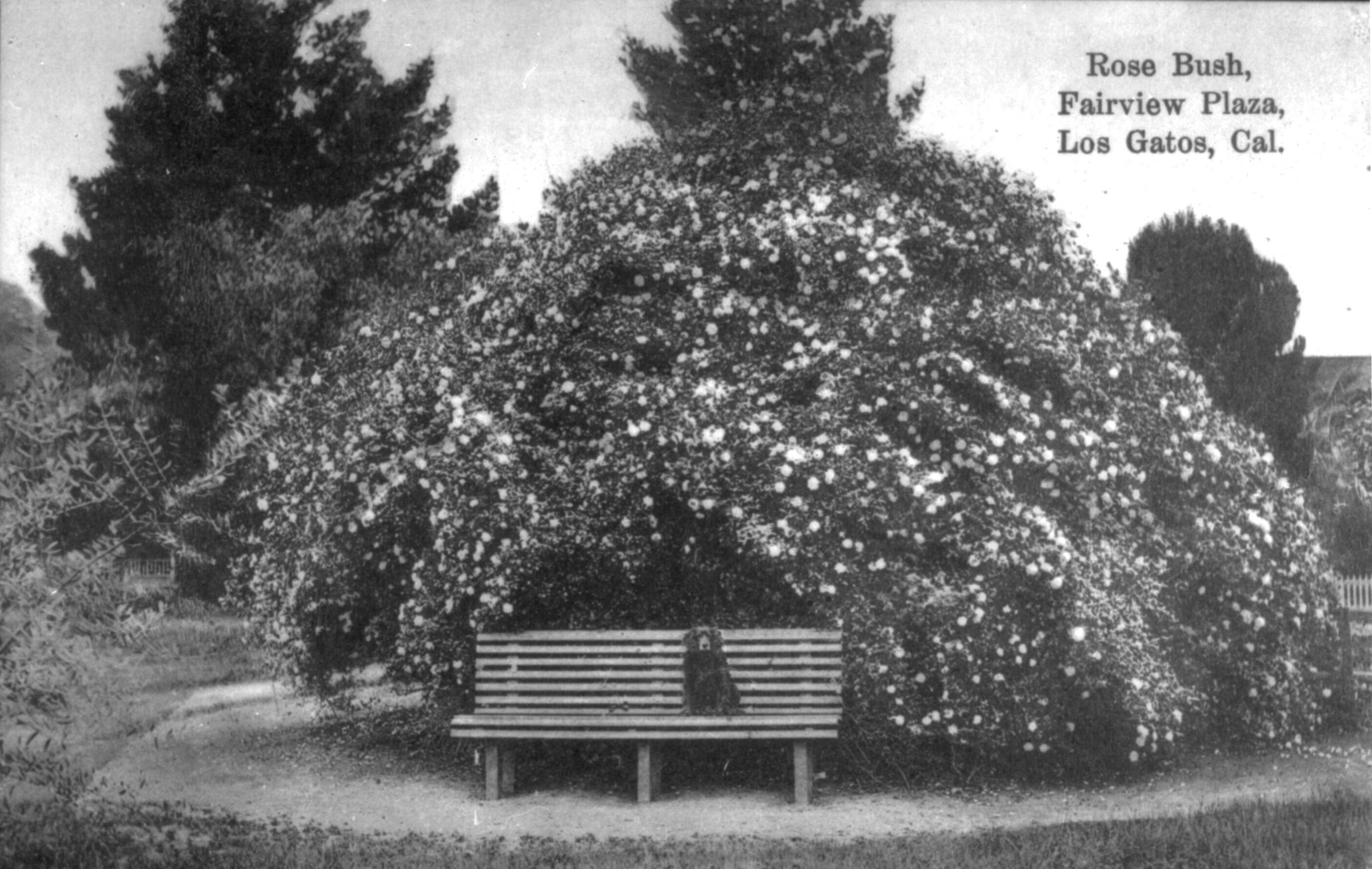 Fairview Plaza is located on a hill at the end of West Main Street. In the photograph is a view of the rose bush in Fairview Plaza, circa 1915. BA086Subject