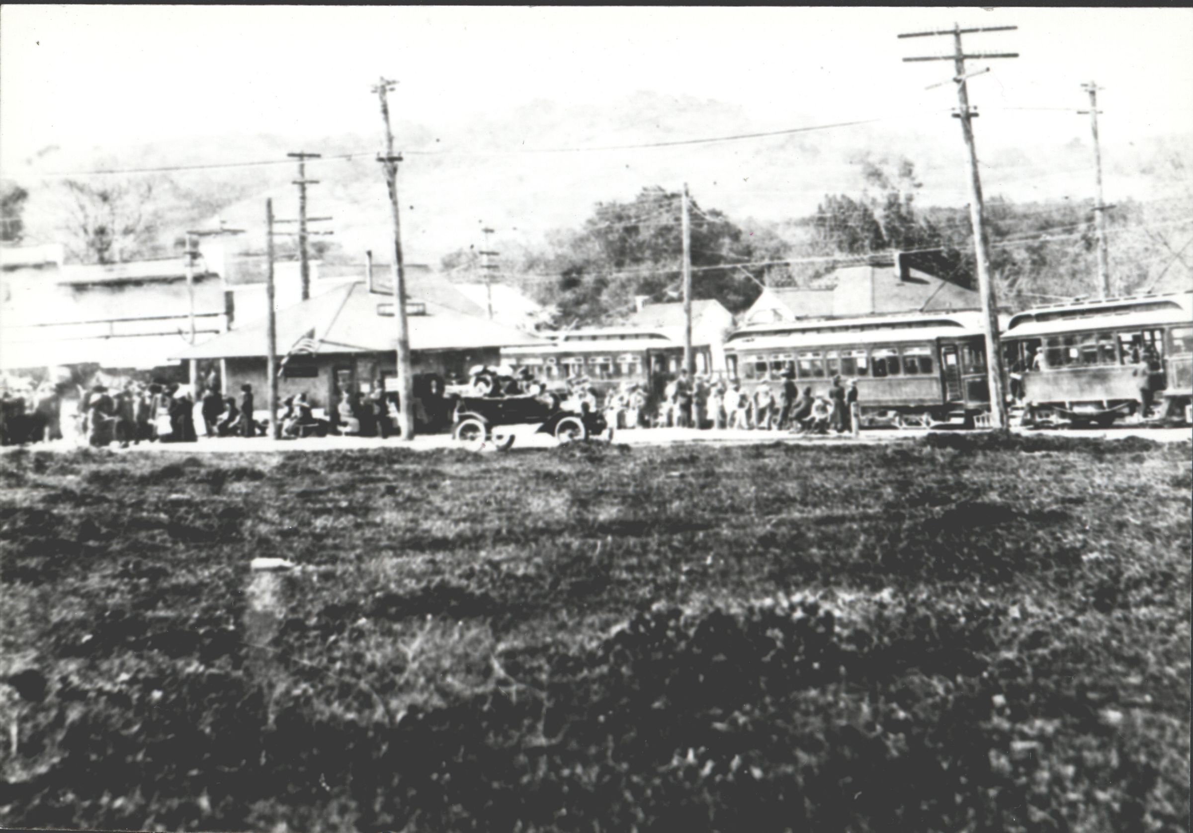 Passengers arriving for Blossom Festival in Saratoga, circa 1915. BA013Collection