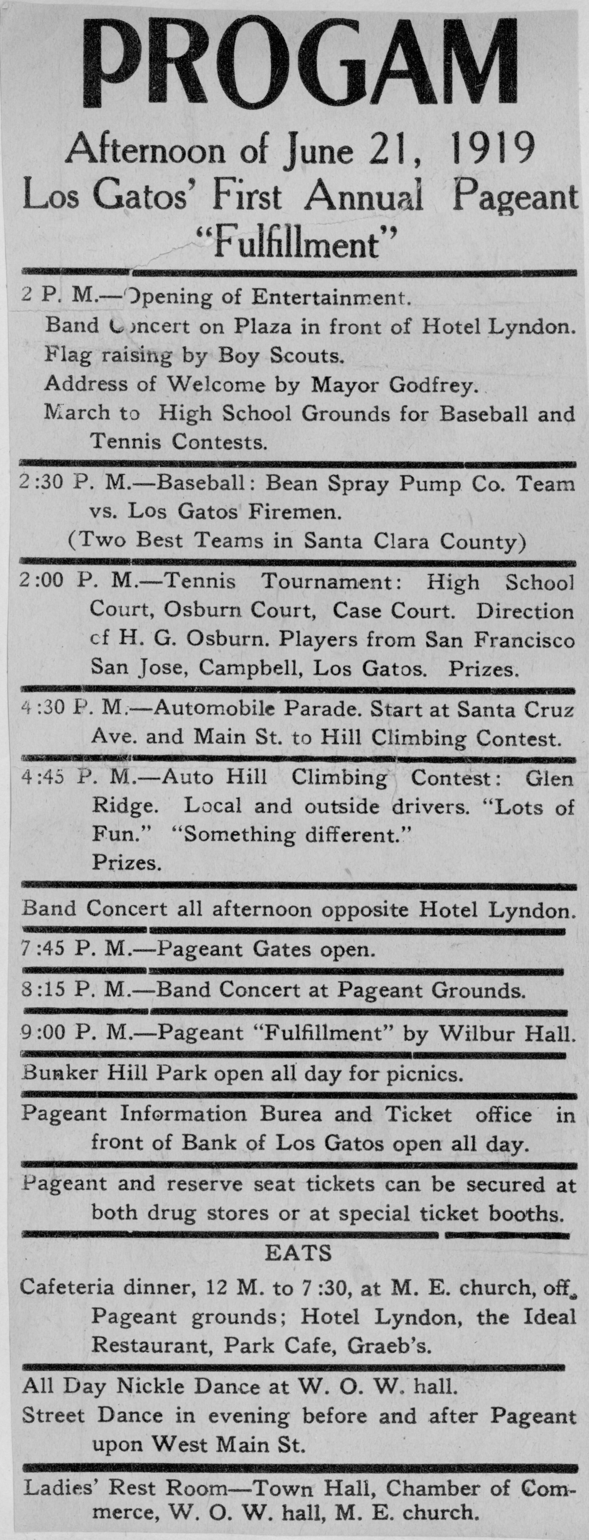 A flier announcing the events of the day for June 21, 1919. PAG011f