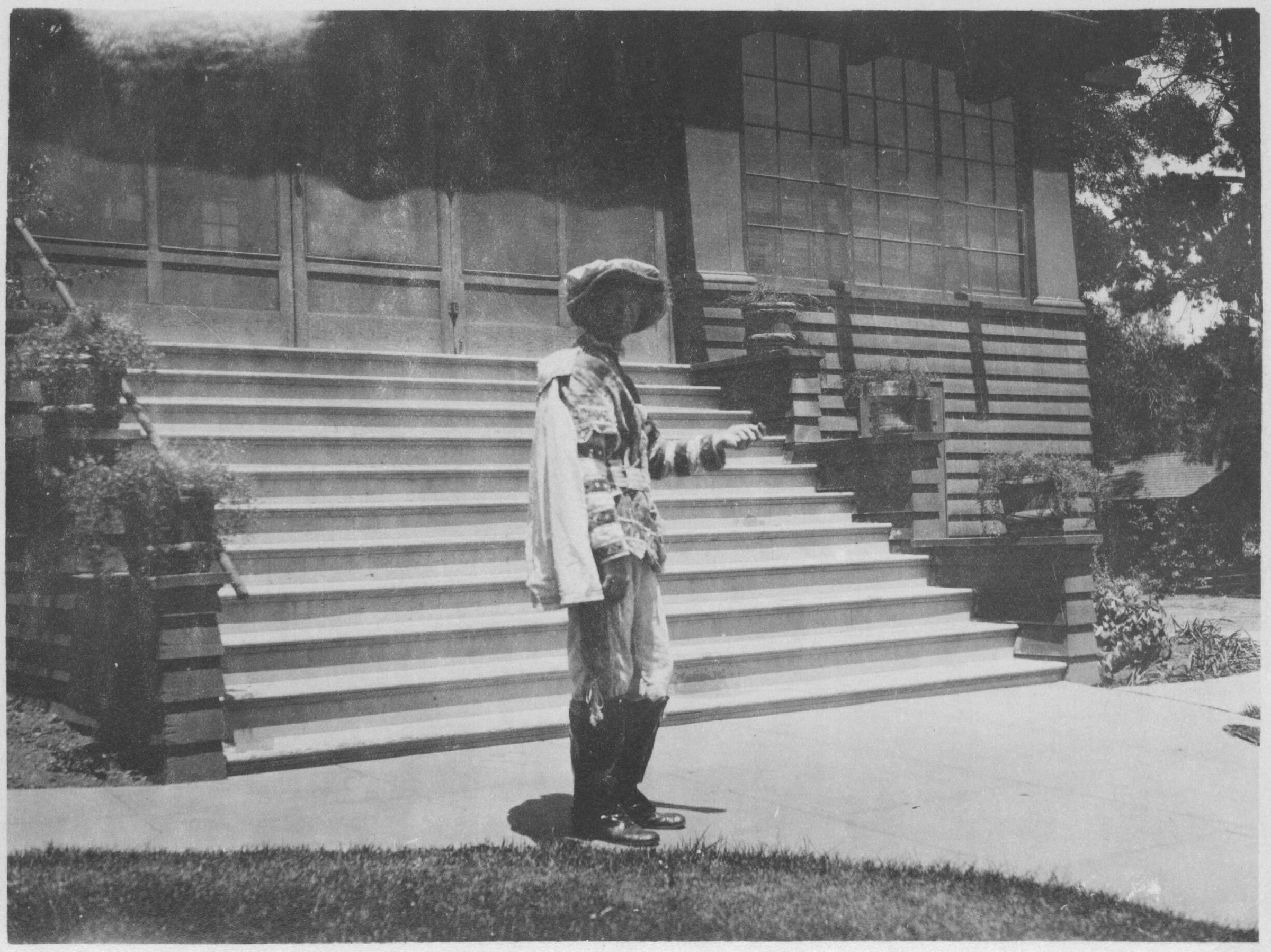 Dean Balch, dressed for his part as one of the extras in the pageant, The Californian. Mr. Balch was an Iowa banker who came west in 1904. He and his partner, J. A. Case, purchased the Bank of Los Gatos, which remained a locally-owned institution until 1926. This photograph was taken at the Balch and Case home compound at Massol and Saratoga Avenues. PAG017Collection