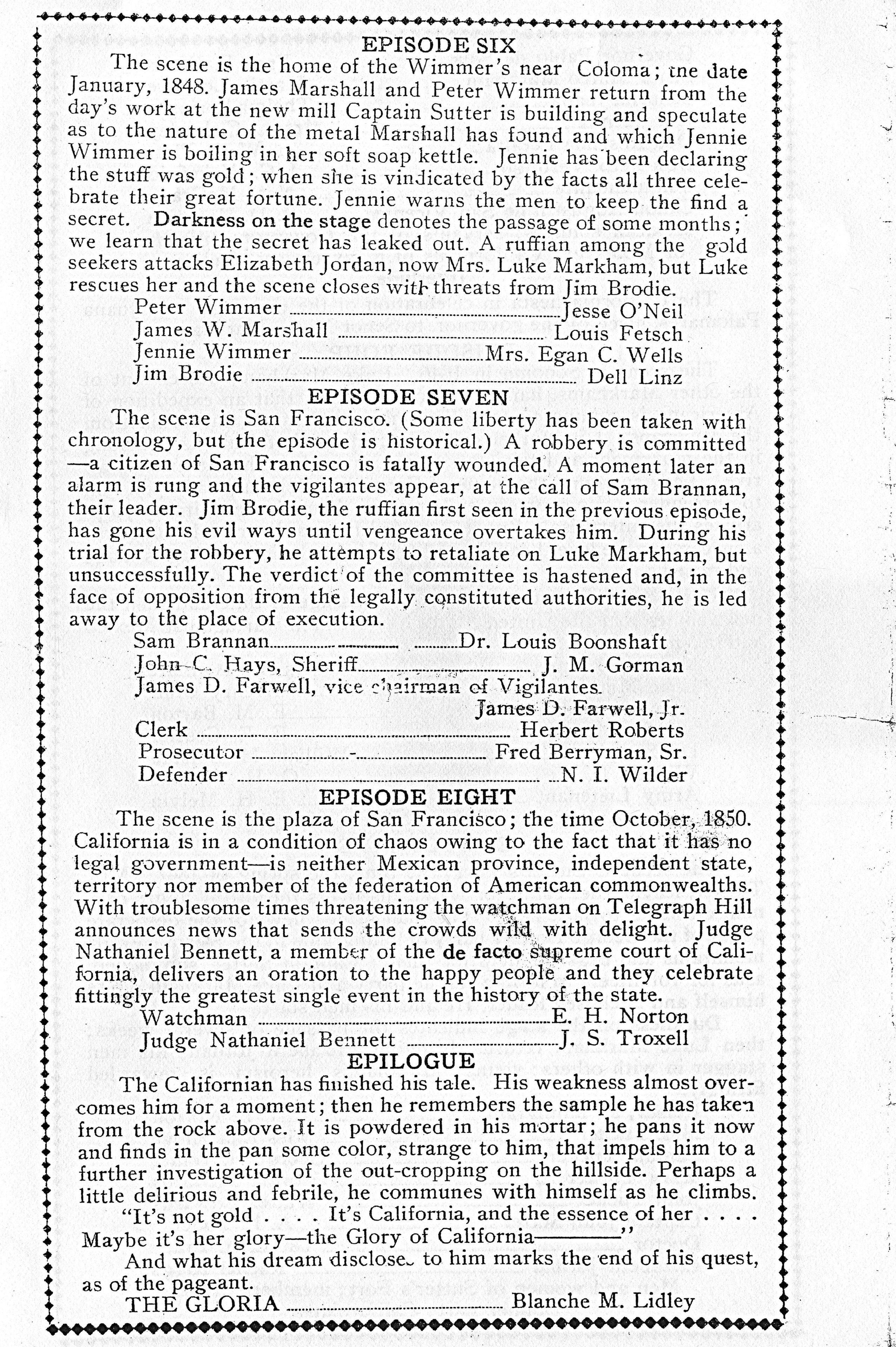 Cast list and summary of episodes 6, 7, 8, and epilogue. PAGDOC004Collection