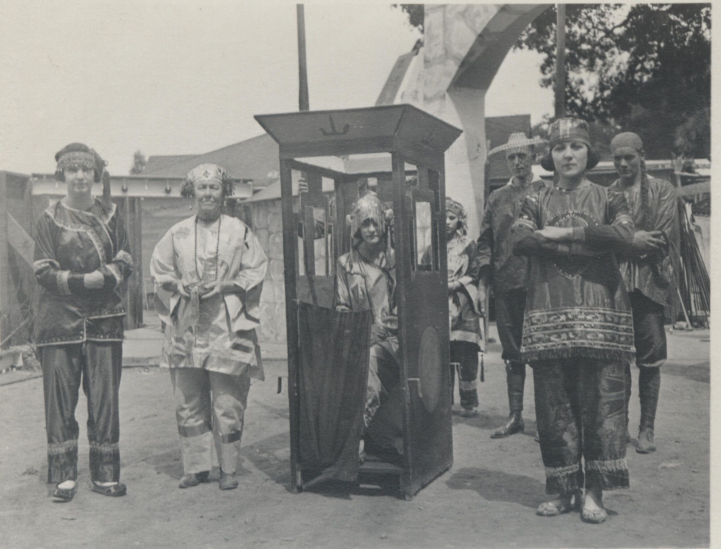 From left to right; Alice Blake, Ellen Montgomery, Frances Yount in the carriage as the Princess Moy Po, and Delia Puccinelli on the far right. Alice Blake and Delia Puccinelli were maids of honor to the princess. PAG024Collection