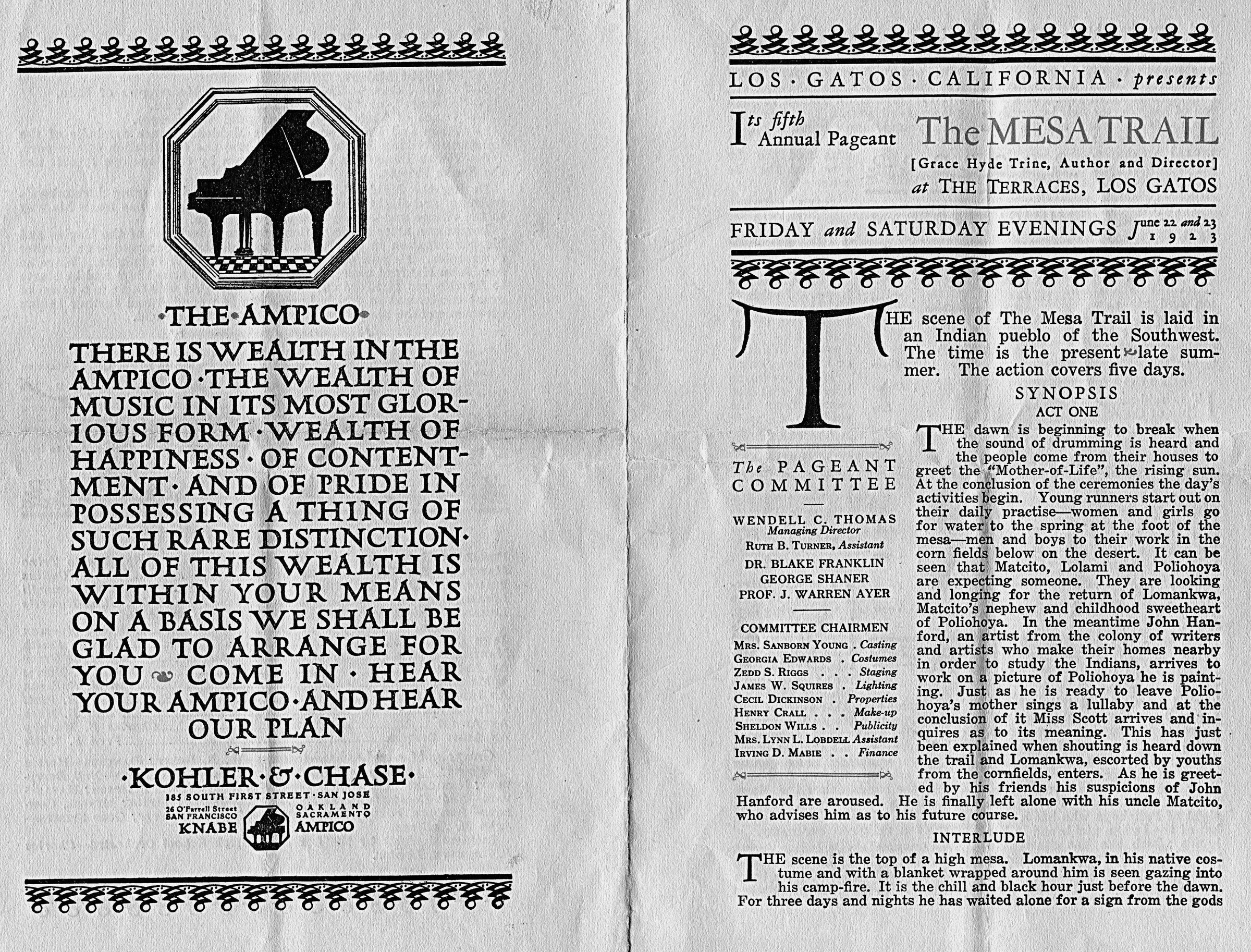 1923 (document-page 1) Mesa Trail programEntry/Object ID