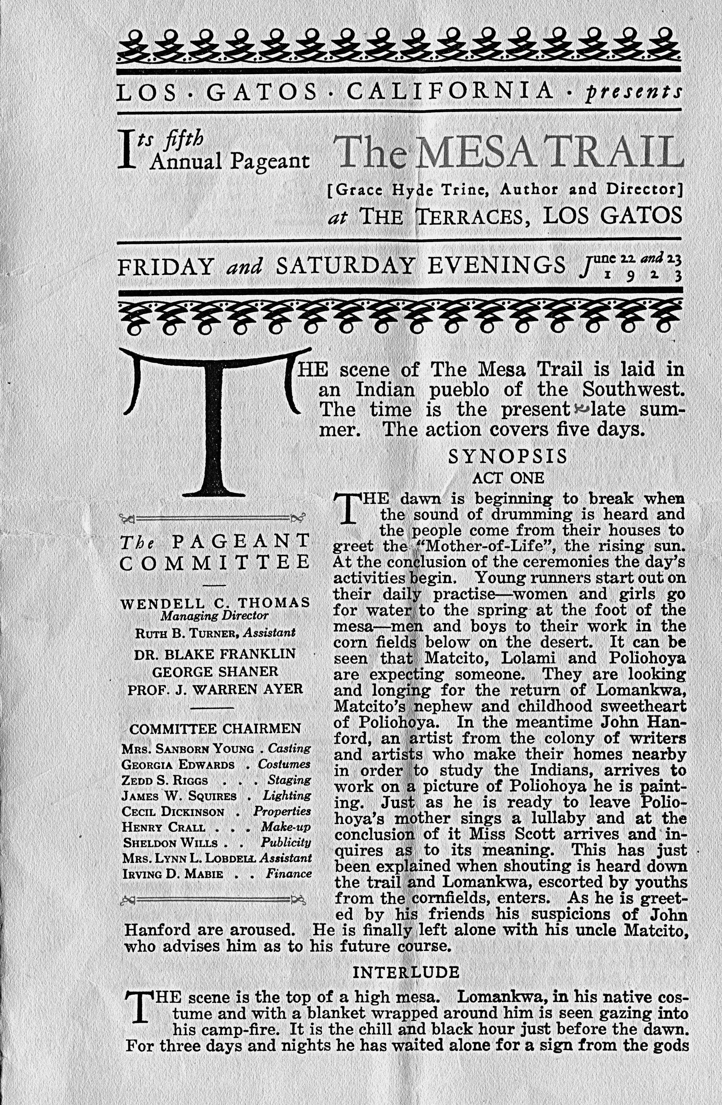 1923 Mesa Trail program (document-page 1)Entry/Object ID