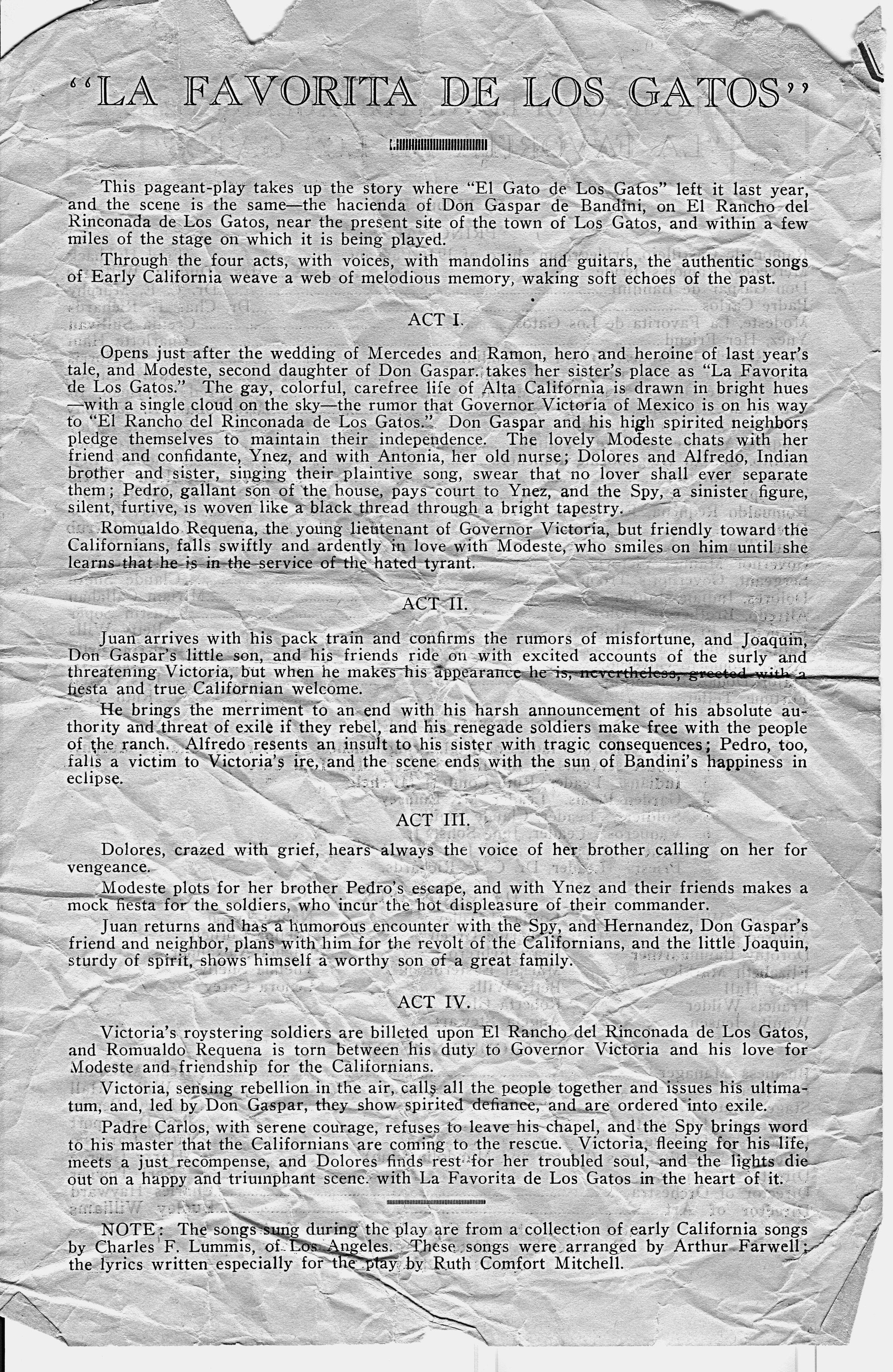 1925 (document-page 1) La Favorita de Los Gatos programEntry/Object ID