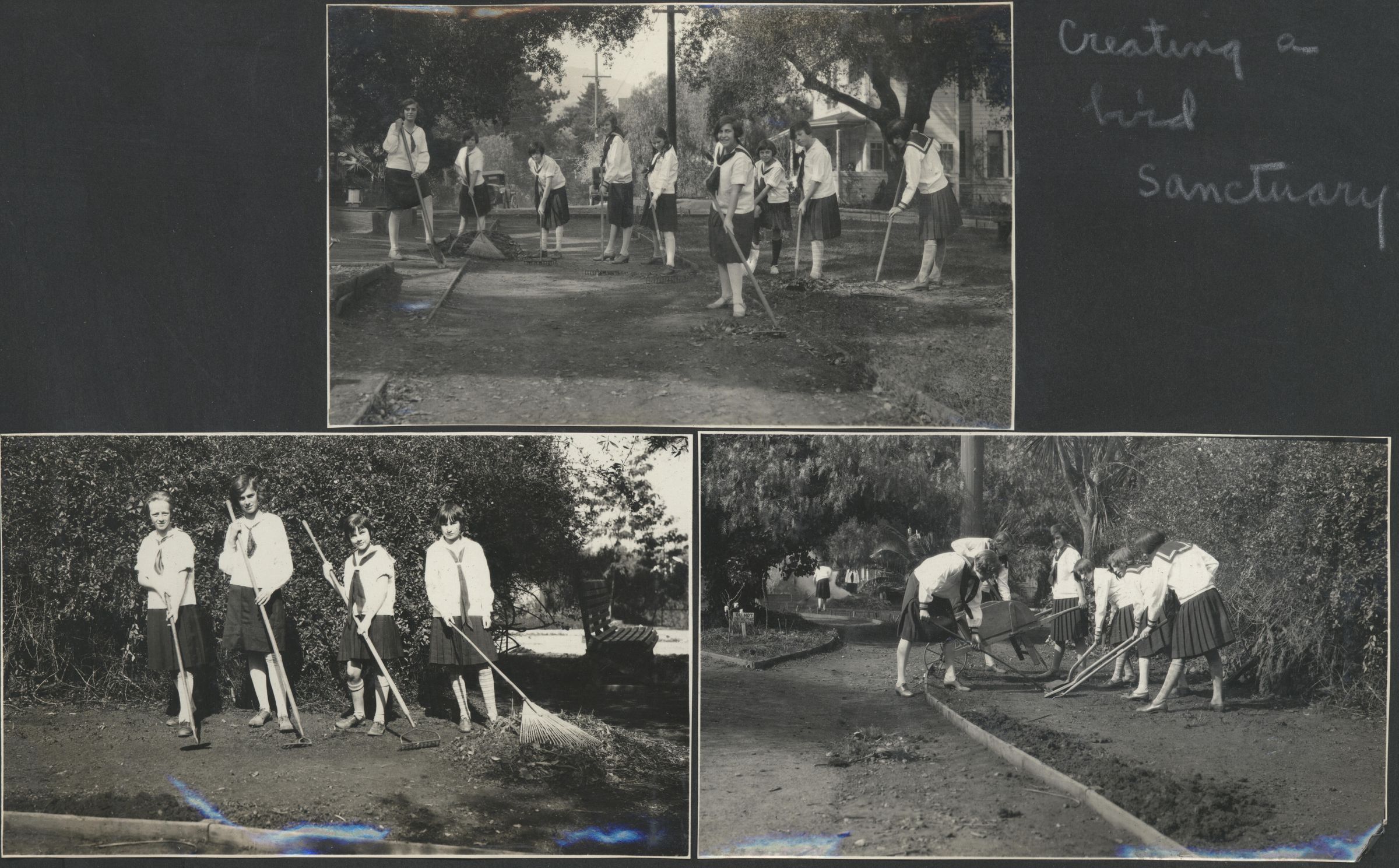 Preparing the ground for the bird sanctuary---weeding, raking and mowing. CFG003Collection