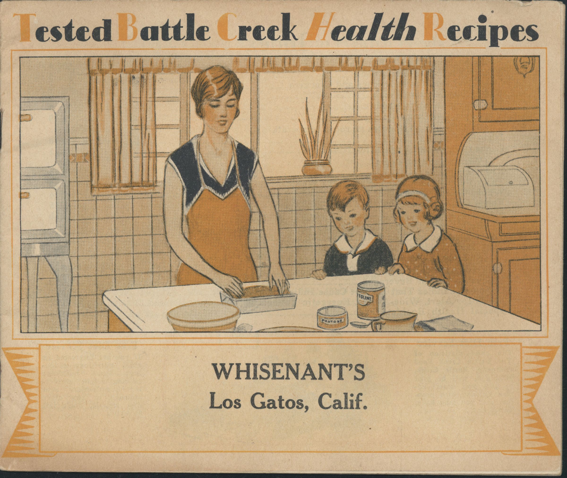 This booklet of "Tested Battle Creek Health Recipes," (front cover) was provided free to customers of Whisenant's Groceries located on East Main Street. BER108Collection