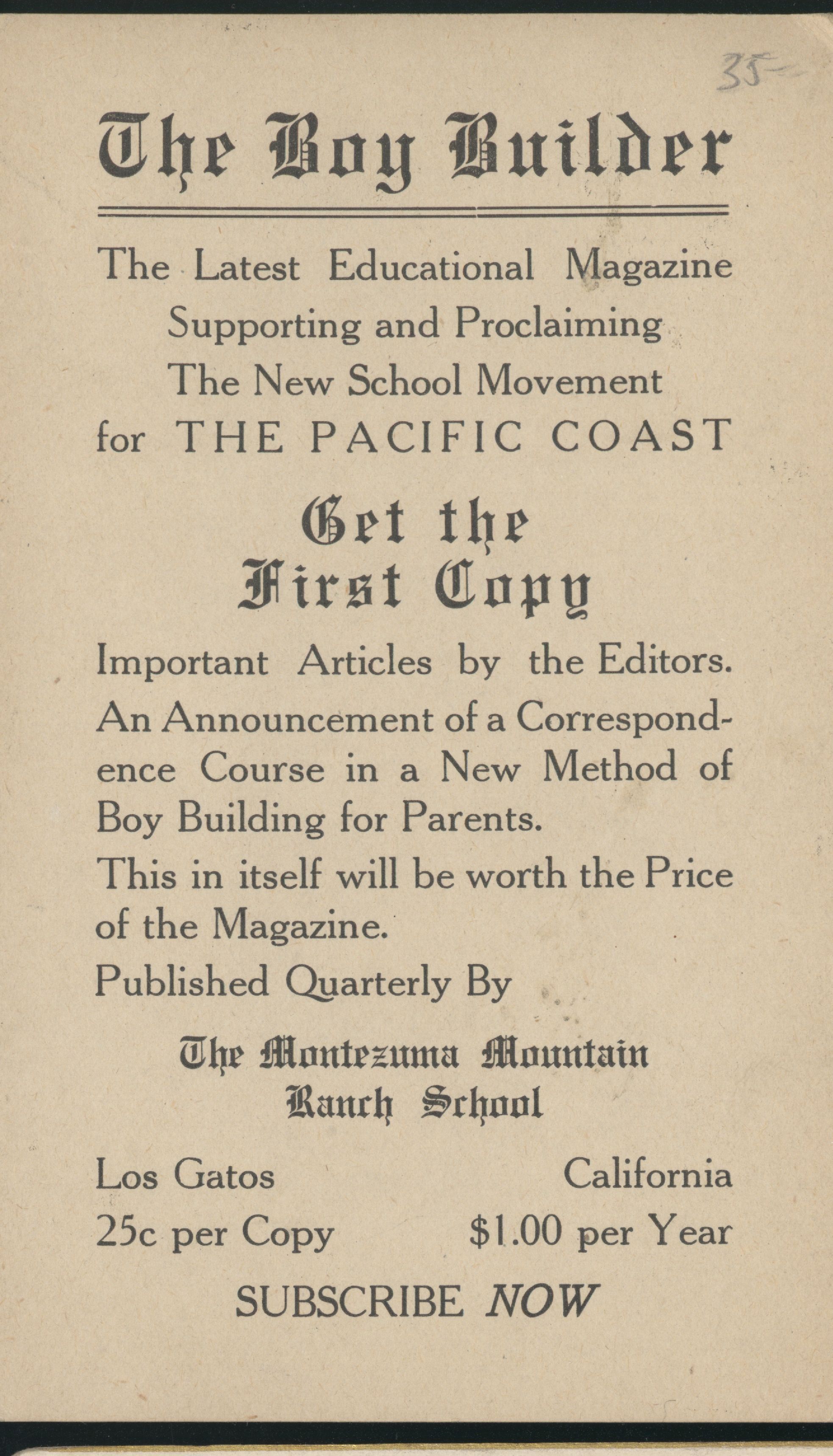 1930 Montezuma Mountain Ranch School advertisementEntry/Object ID