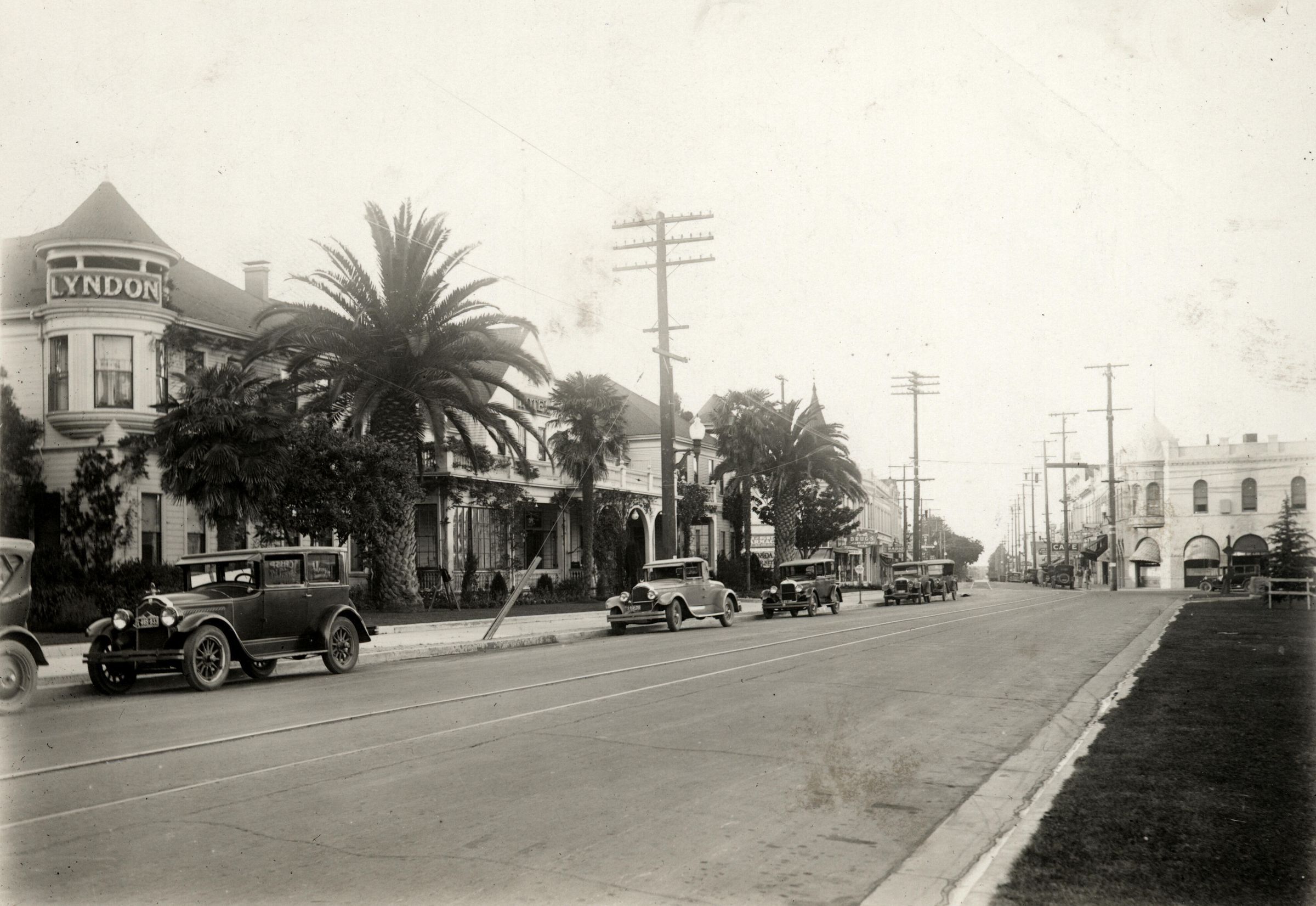 Lyndon Hotel on left, Bank of Italy on corner to the right. SS066Collection
