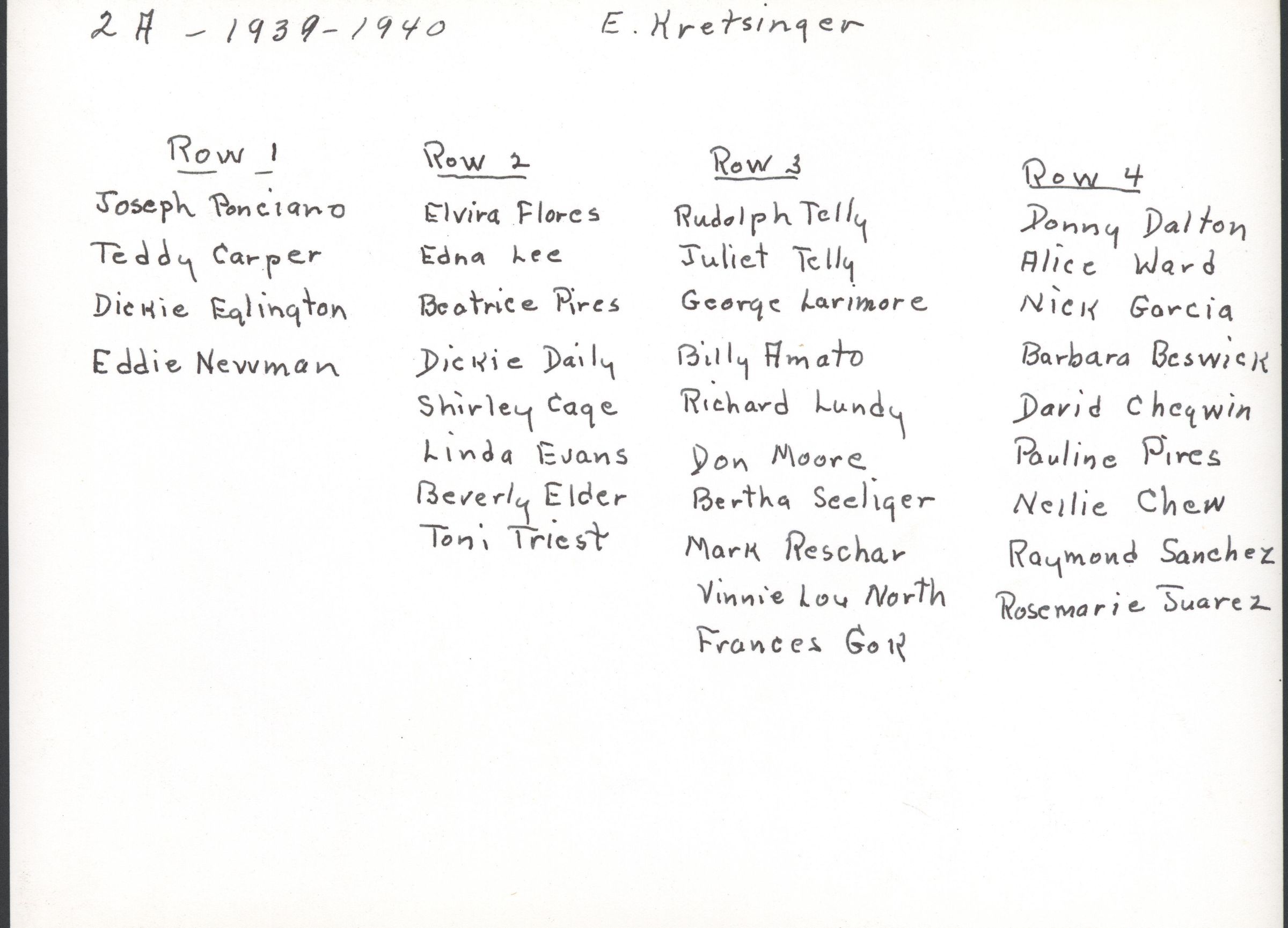 1940 Class 2A - Ethel Kretsinger, teacher, verso, University Avenue SchoolEntry/Object ID