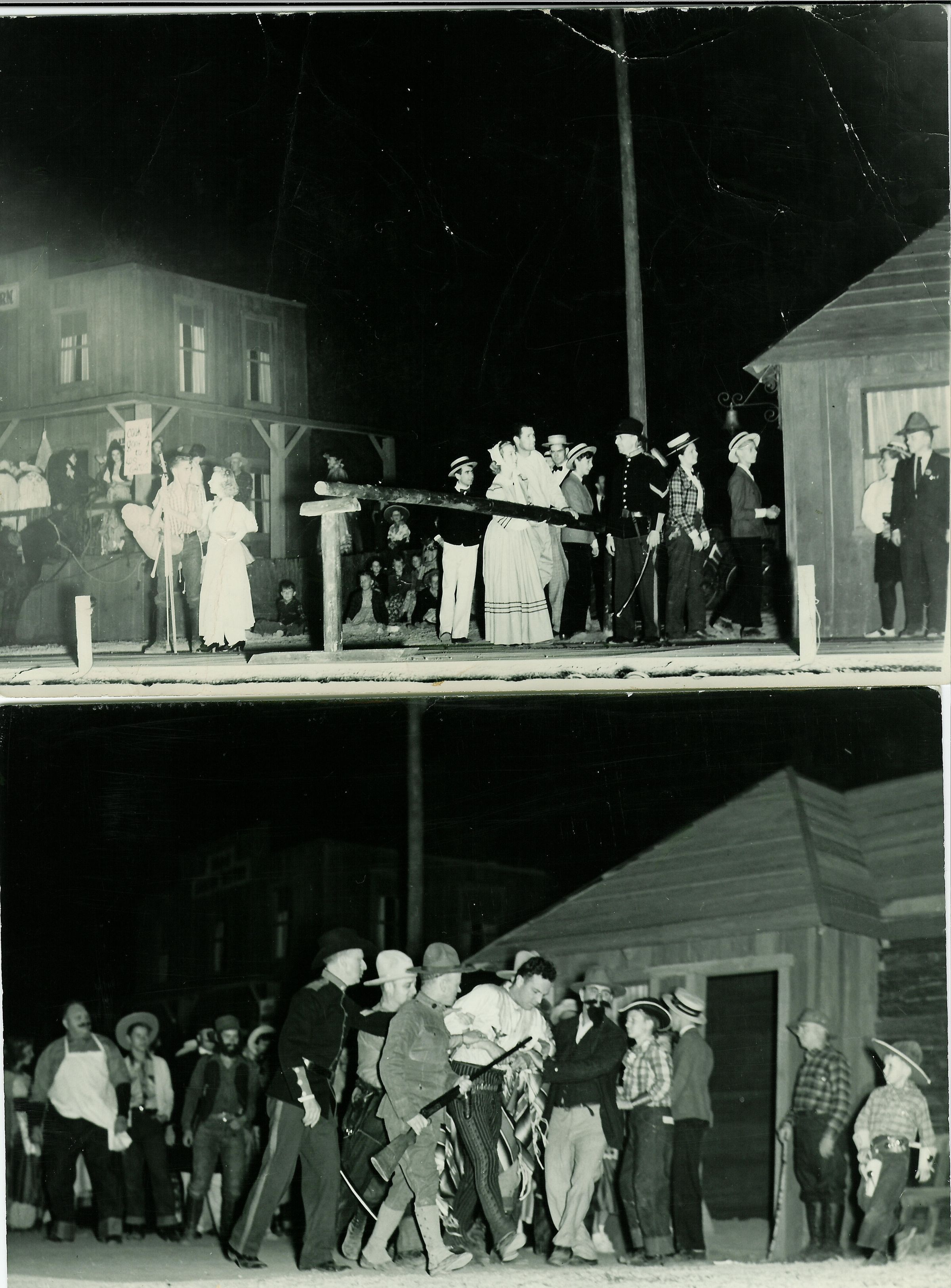 Scene from the pageant written by Owen Atkinson. The man with the sword is John Lincoln. There are no existing photographs of the real toll gate, where Joseph Johnson and Peter Davidson paid the first toll on May 5, 1858. PAG081Collection