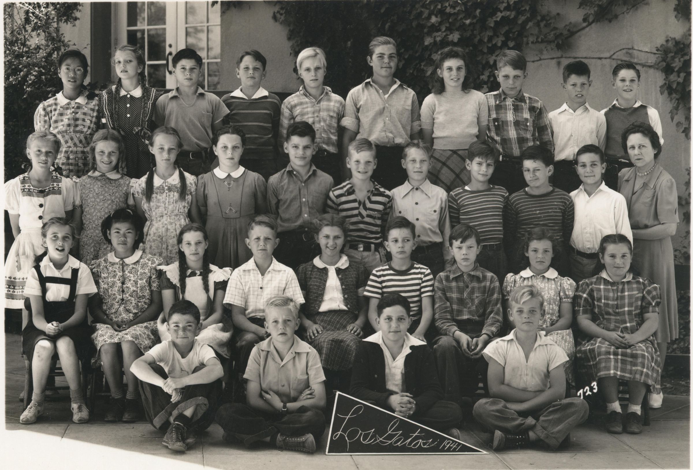 Row 1: Jim Heggarty, Donnel Craib, Ludwig Spolyar, Charles Barnett. Row 2: Vivienne LaMontagne, Mary Woo, Jane Schneider, John Swanson, Colleen Stark, Mark Tett, John Hillman, Patricia Havens, Ernestine Boitano. Row 3: Beverly Walters, Carolyn Cushman, Janice Nickson, Patricia Mullen, John Codaghengo, George Hoenig, Donn Wood, Donald Callahan, Tenison Haley, Bob Blankenbaker, Mrs. English, teacher, Row 4: Lorraine Louie, Dorothy Viner, Stanley Lilly, Grendon Gilkey, Richard Sutton, James Santos, Audrey Martin, Laurence Casaletto, Bob Lanlett, Alvin Shafor. LGUSD41003aCollection