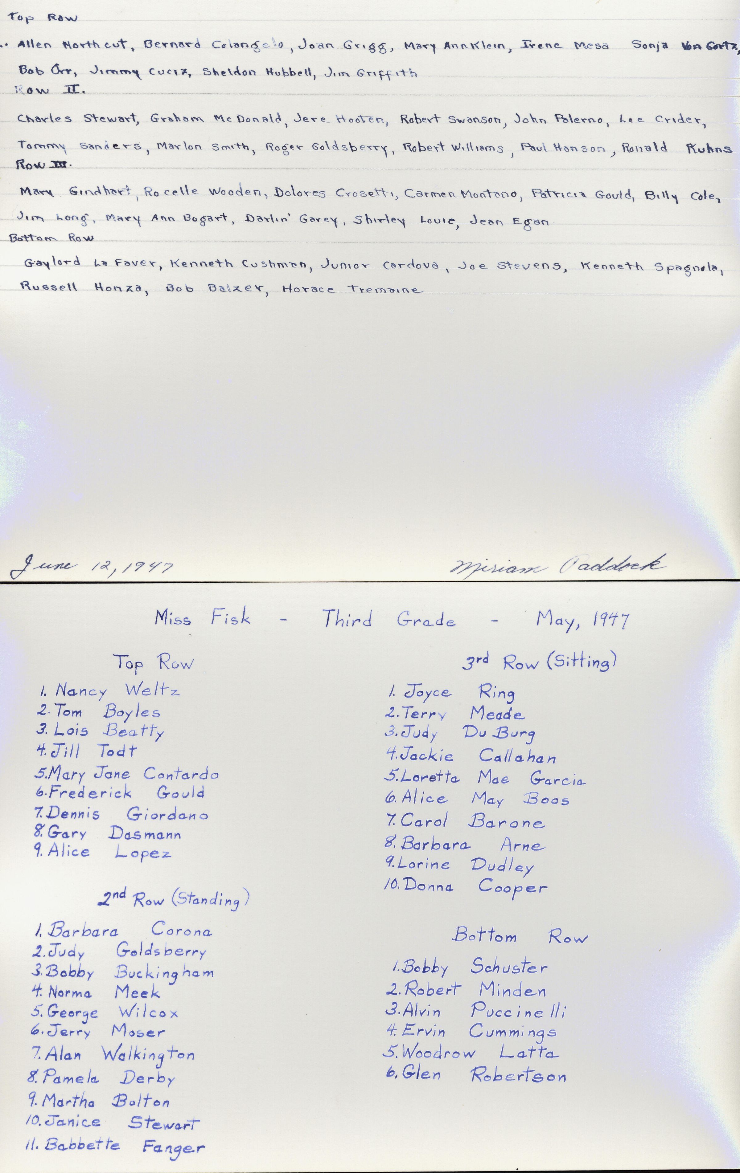 1947 Class 3 - Miss Fisk, teacher, verso, University Avenue SchoolEntry/Object ID