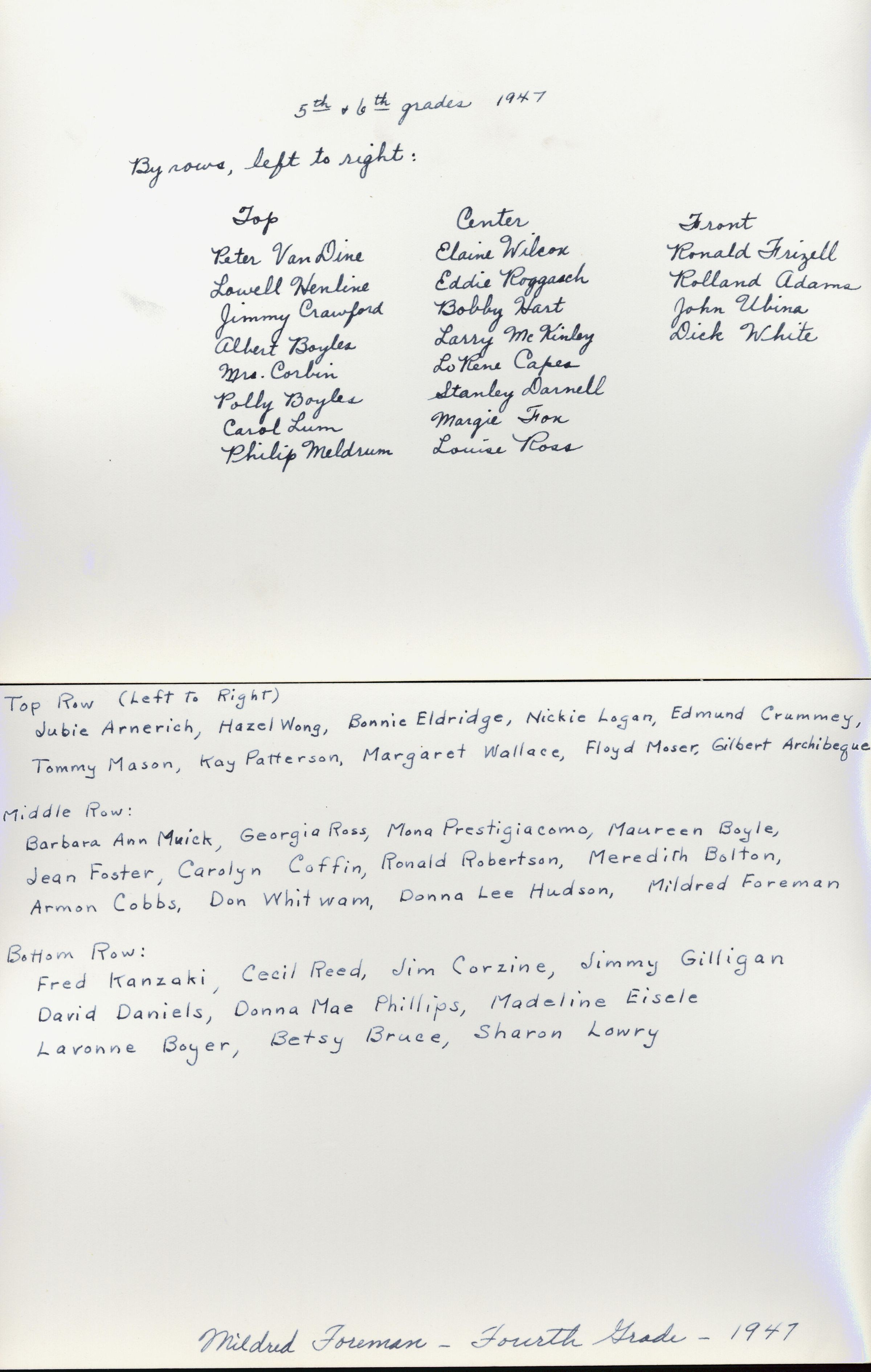 1947 Class 4 - Mildred Foreman, teacher, verso, University Avenue SchoolEntry/Object ID
