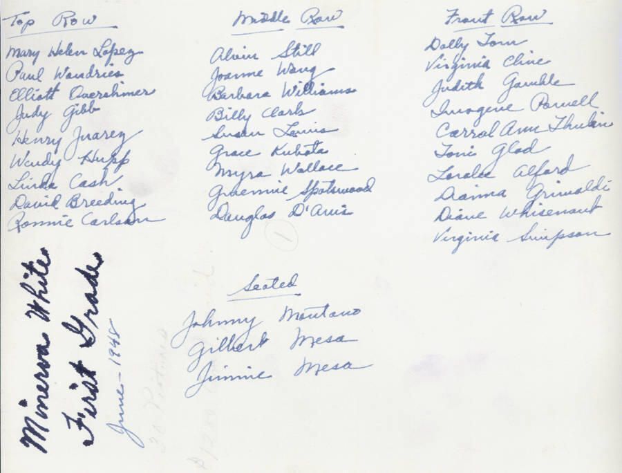 1948 Class 1 - Mrs. Minerva White, teacher, verso, University Avenue SchoolEntry/Object ID