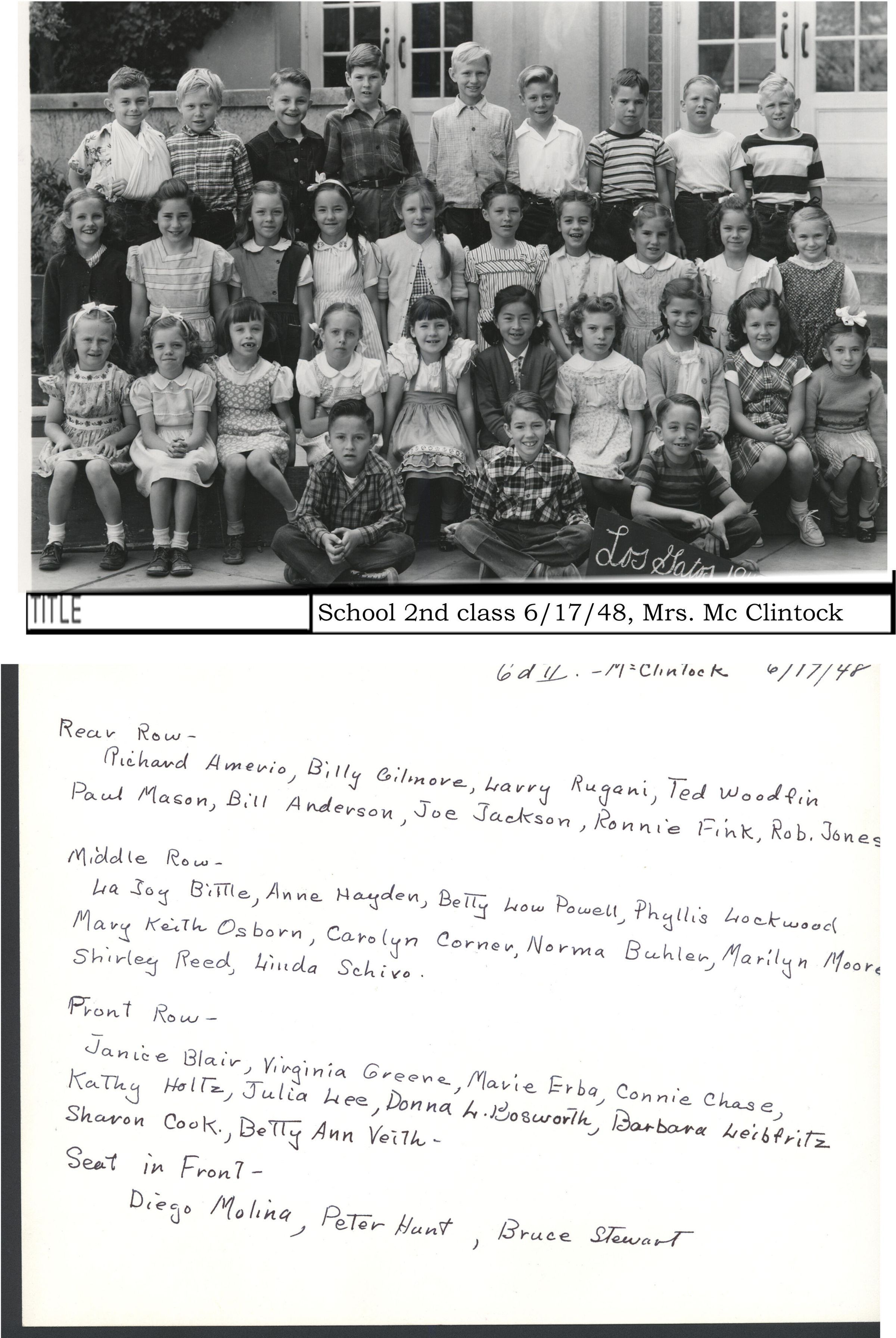 1948 Class 2 - Miss McClintock, teacher, verso, University Avenue SchoolEntry/Object ID