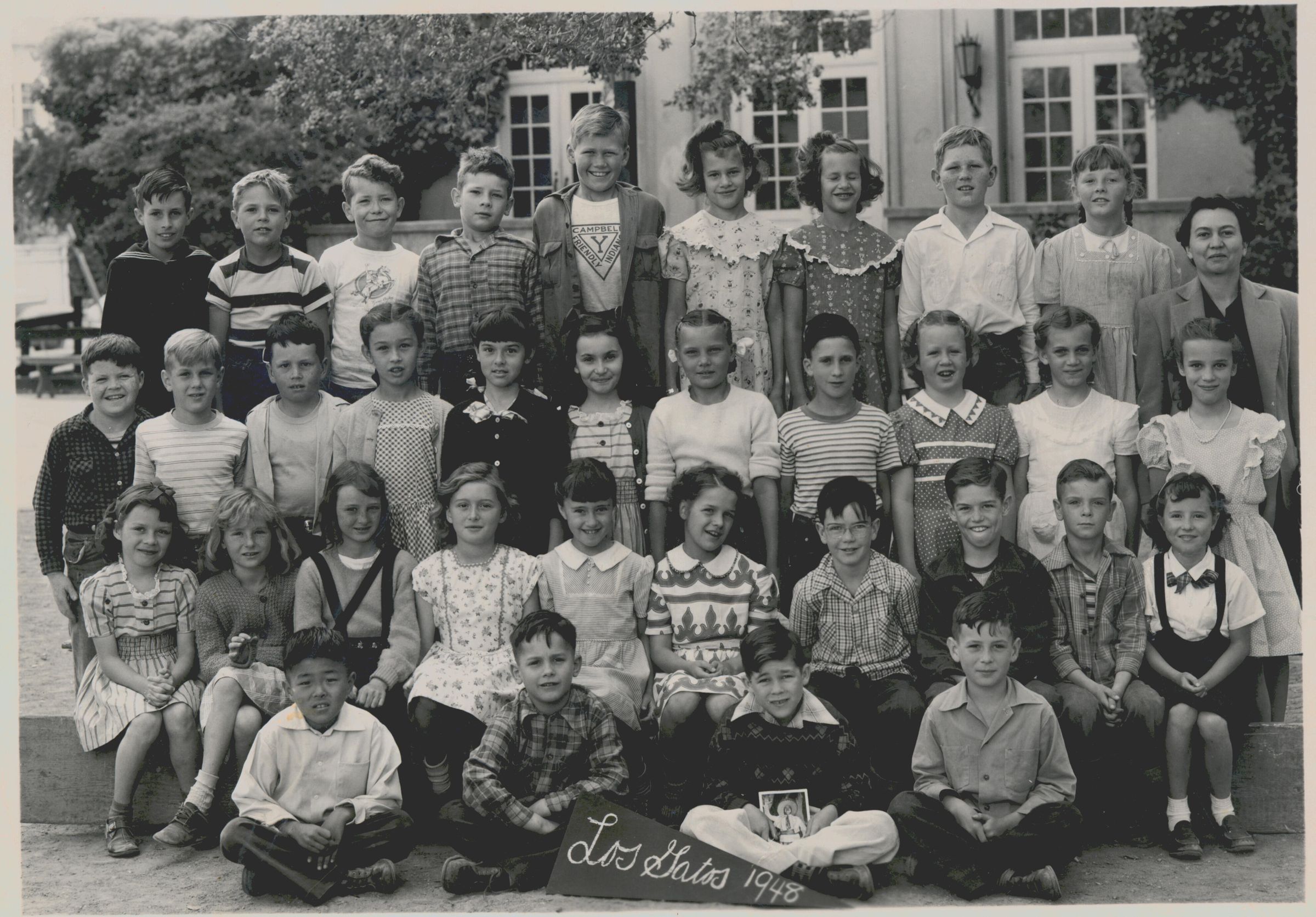 Mrs. Coolige's class. Dick Whitaker is 2nd from left, 3rd row from bottom. Bill Mason is 2nd from left, top row. Others include (in uncertain order) Peggy Cline, Renee Aymar, Stephanie Olson, Susan Smith,Roy Enos, Norm Alford, Gaylon Smith, June Sasaki, Bob Rosenthal. BA036Collection