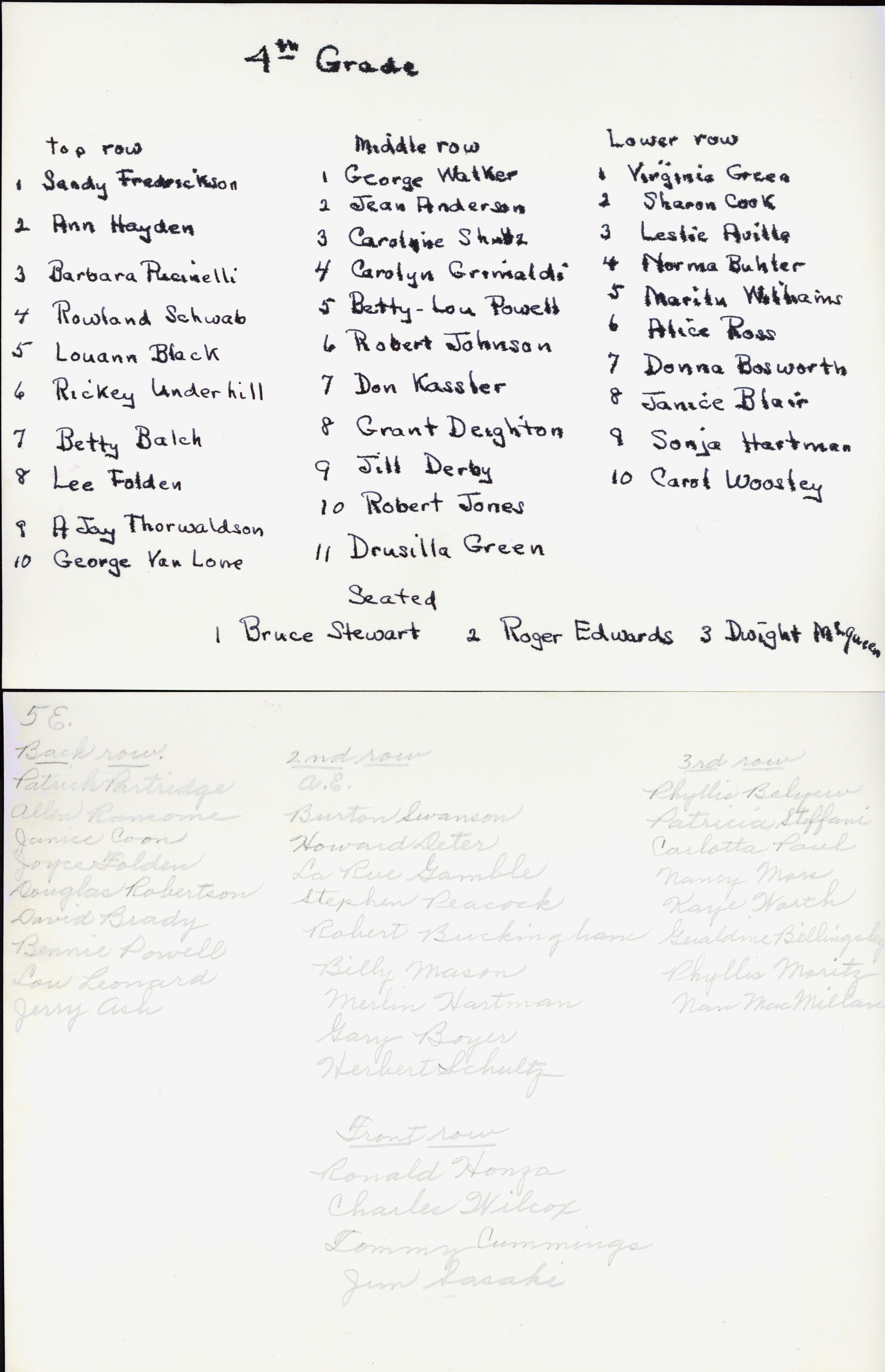 1950 Class 4 - No teacher listed, verso, University Avenue SchoolEntry/Object ID