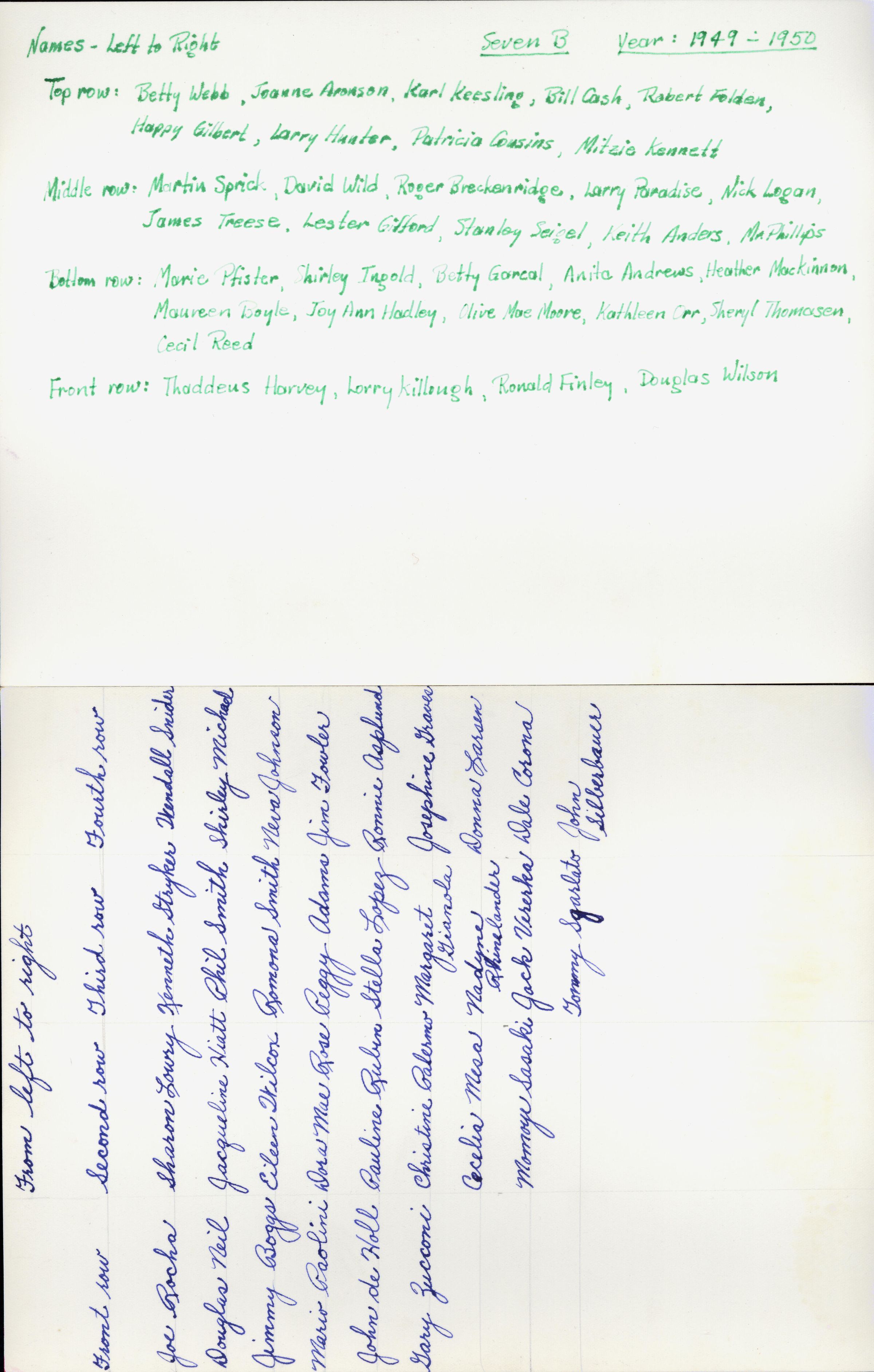 1950 Class 7B - Mr. Phillips, teacher, verso, University Avenue SchoolEntry/Object ID
