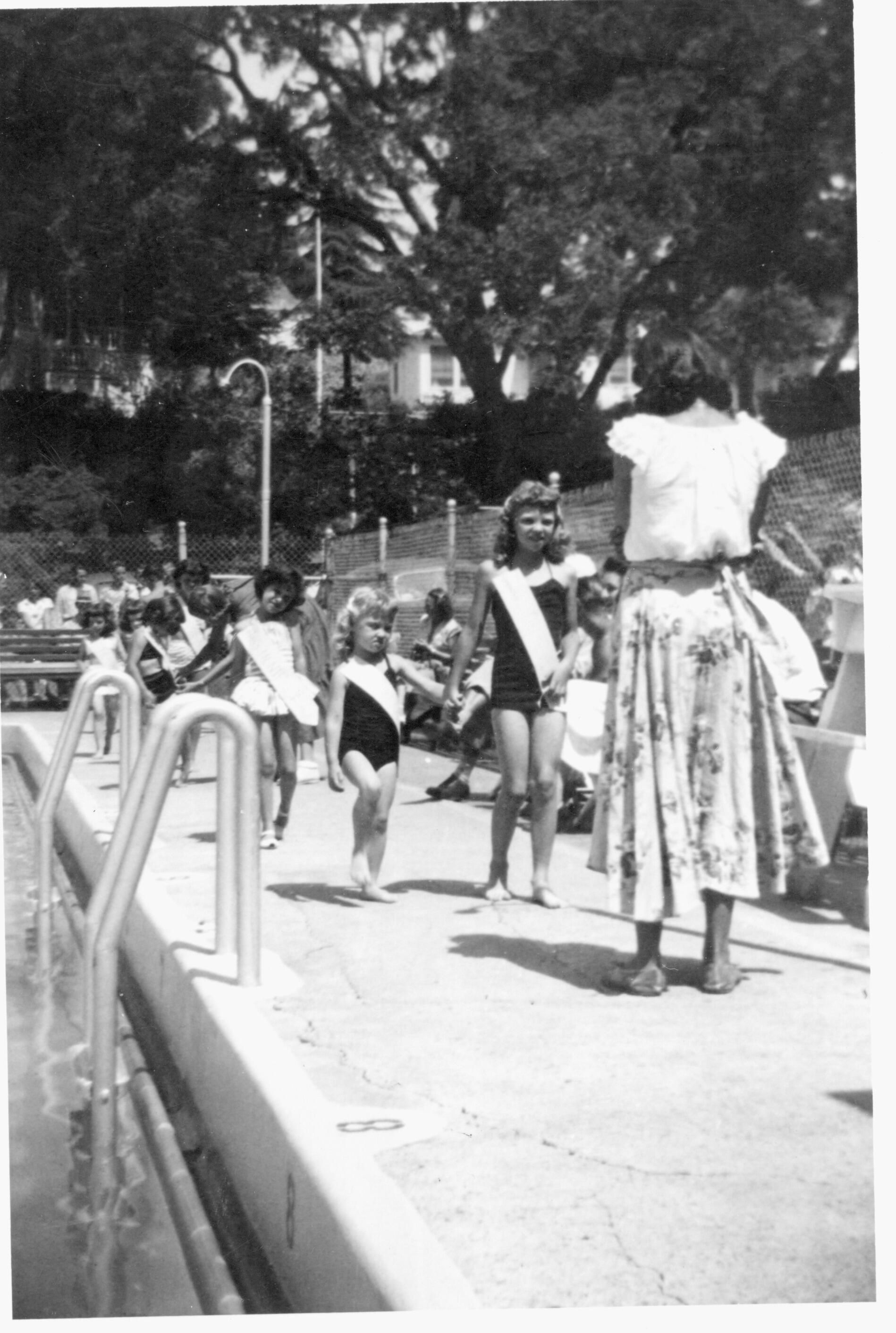 Mrs. Donald Johnson, with her back to the camera, helped organize the first "beauty contest" at the swimming pool in Memorial Park. CAP005Collection