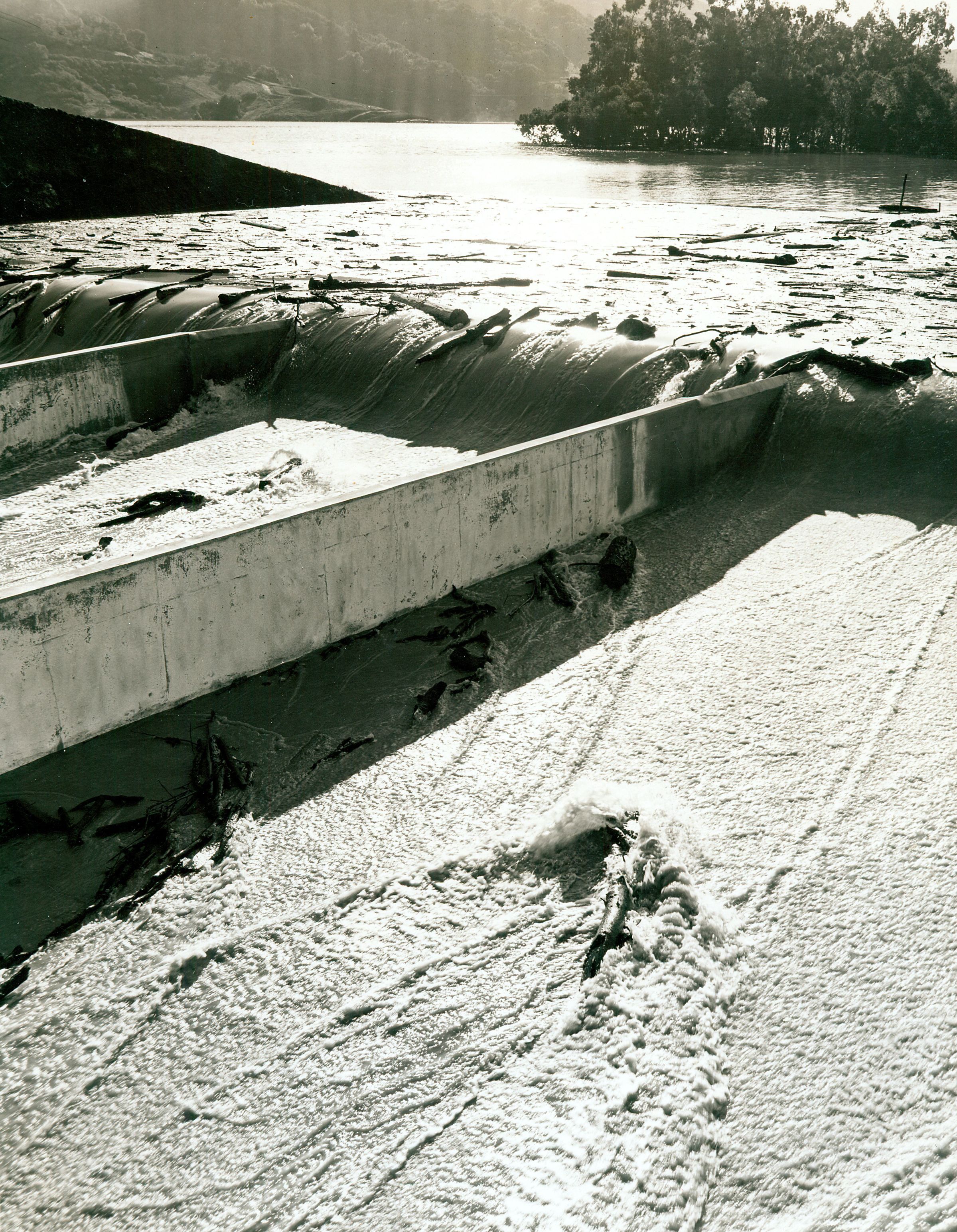 The reservoir has filled. First dam overflow occurred in 1952. MTN141Collection